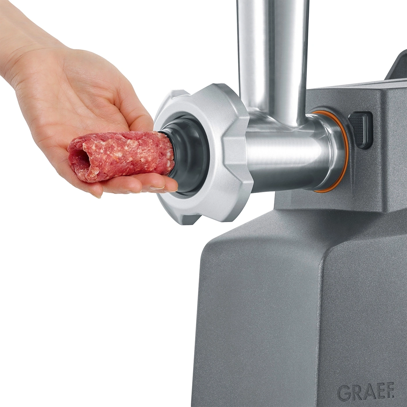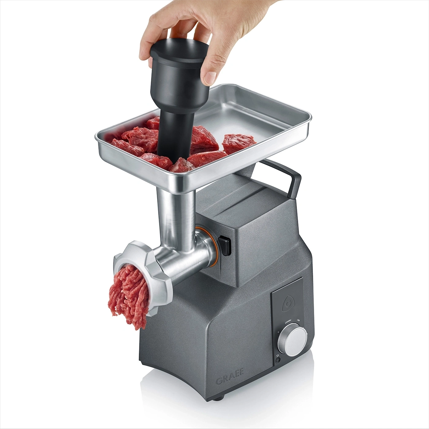 Cand vine vorba de tocat carne sau preparat carnati masina de tocat carne de la Graef vine in ajutorul dumneavoastra, fiind dotata cu accesorii care permit tocarea carnii pentru carnati, chiftele, musaca, umplerea carnatilor traditionali dar si sa prepari biscuiti deliciosi de casa. Cele 4 site perforate, fabricate din otel inoxidabil, iti permit sa toci carne de la fin la grosier intr-un mod eficient.
