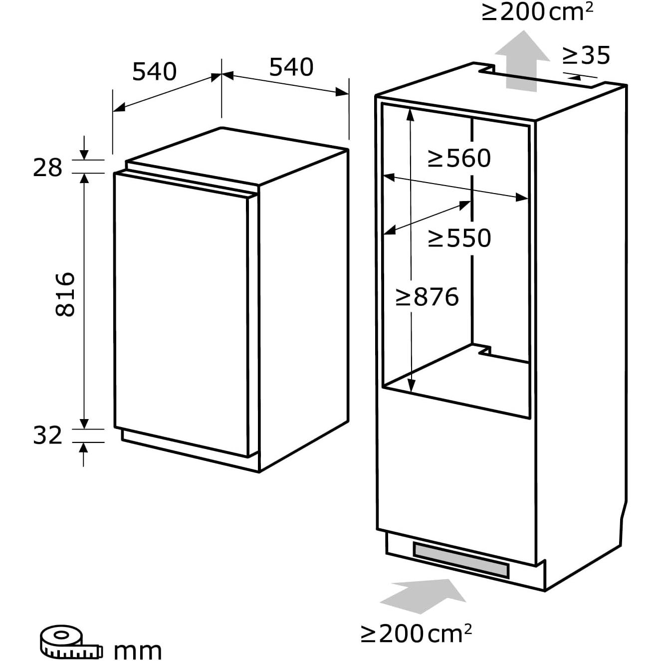 *Se recomanda pastrarea unui spatiu suplimentar de 5 cm pentru o ventilatie optima.