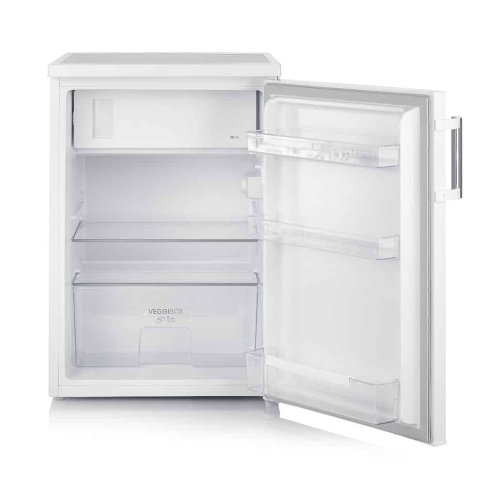 Dispune de o capacitate totala de 120 litri, dintre care 107 l sunt pentru frigider iar 13 l pentru congelator. Interiorul permite depozitarea alimentelor cat mai practic, datorita celor 2 rafturi din sticla iar compartimentul special pentru legume si fructe le va mentine proaspete si gustoase.