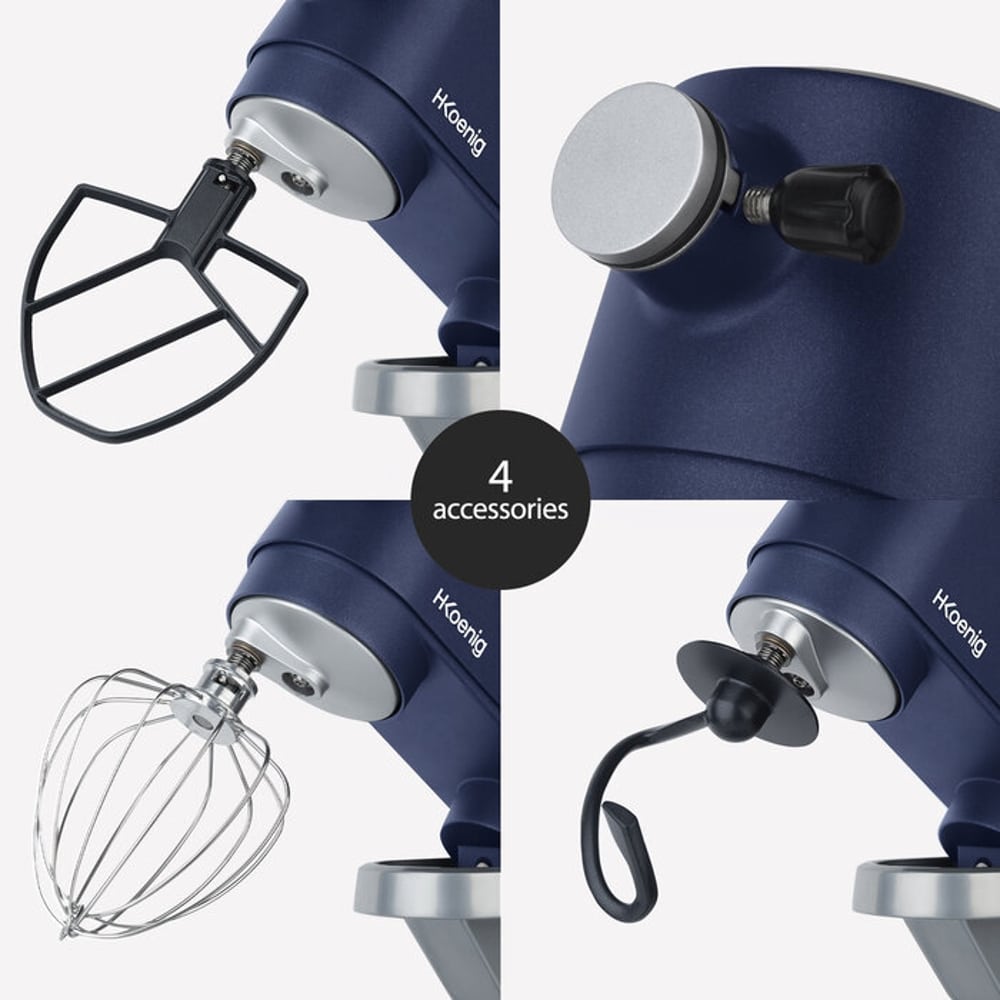KM126 are, de asemenea, un tel, mixer si carlig pentru aluat pentru a face o varietate de retete. Capul sau inclinabil si capacul rezistent la stropire il fac usor de utilizat si de intretinut zilnic.