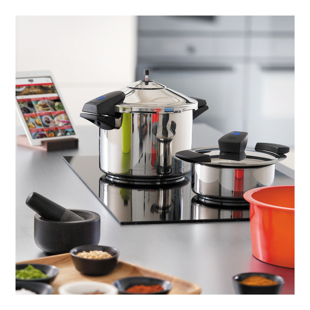 Oala cu senzor de temperatura, de 3 litri, de la Kuhn Rikon din colectia Hotpan Comfort face parte din gama pentru bucatarie si servirea mesei, fiind un vas pentru gatit elegant si performant. Acest produs este conceput special pentru a gati sanatos si rapid, datorita conectarii prin aplicatie care te anunta automat cand este gata mancarea.