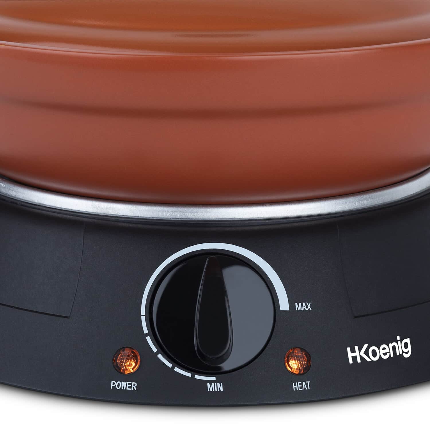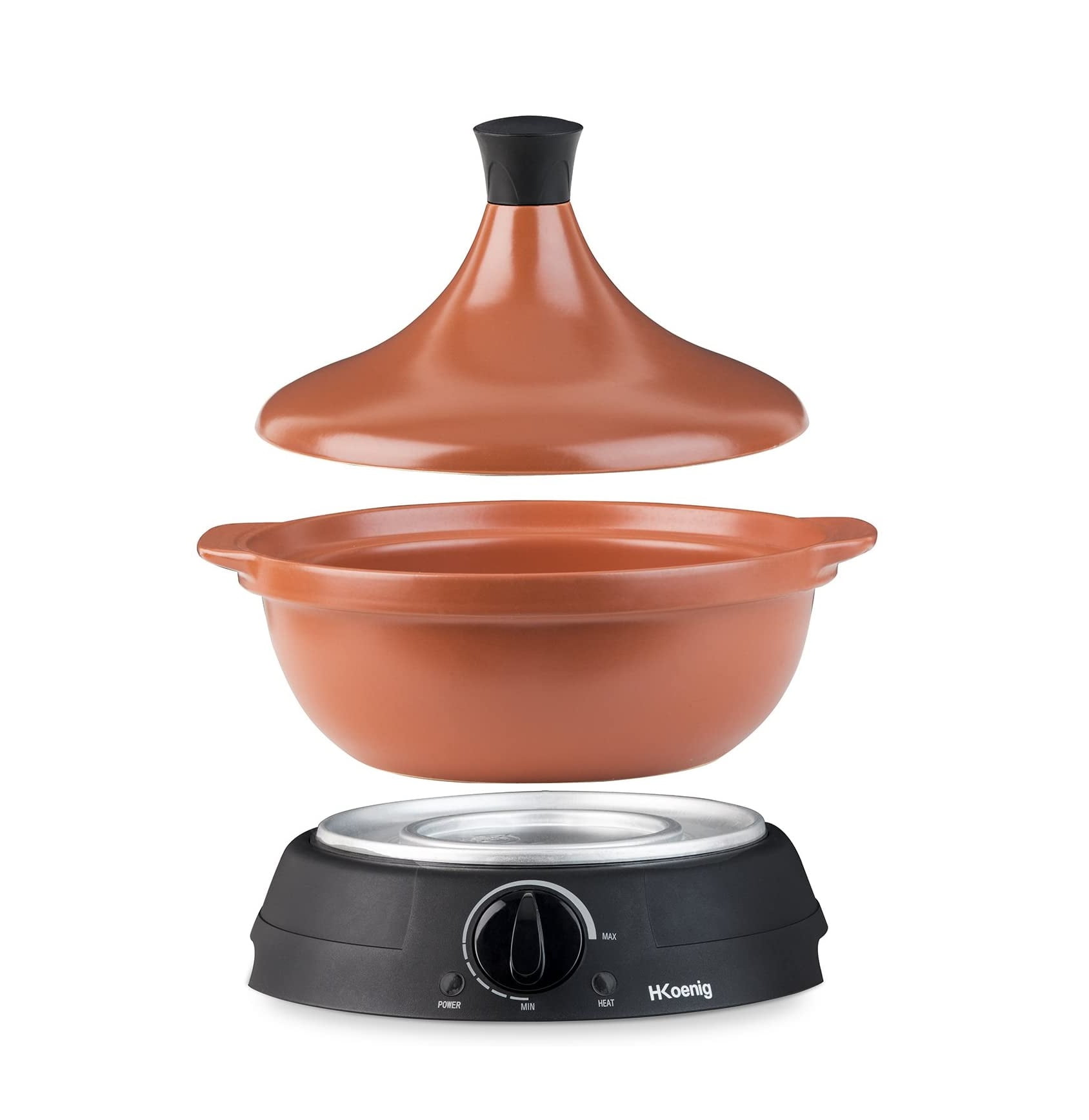 Forma conica a vasului imita un cuptor din lut, capacul permite aburului sa circule, mentinand preparatele proaspete si fragede.