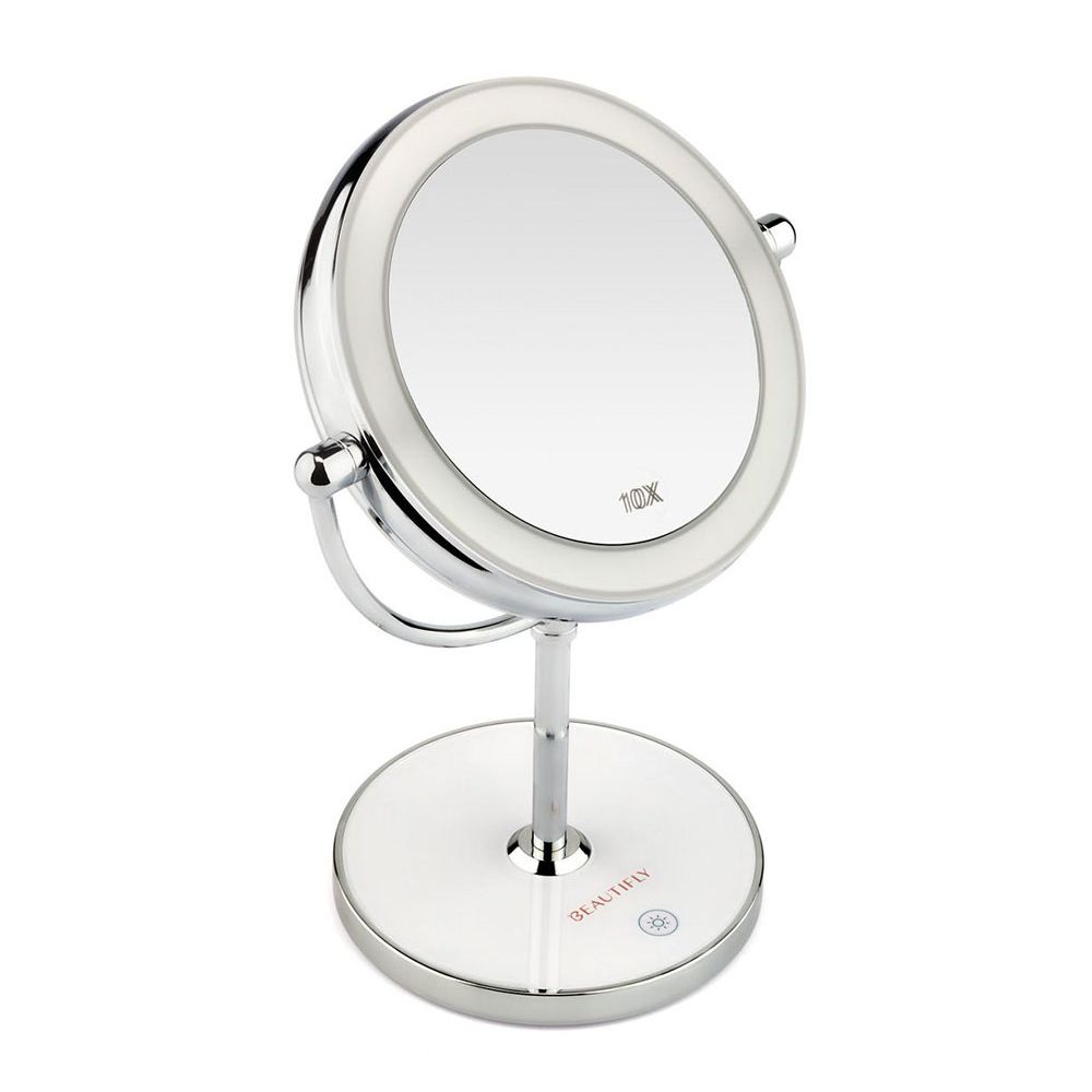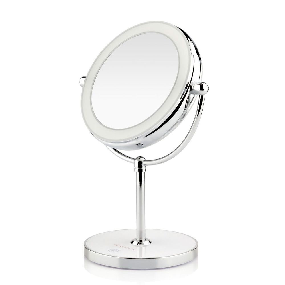 Oglinda iti ofera luminozitate si claritate datorita iluminarii puternice, actionata prin senzor touch. Mai mult, avand 2 fete, una dintre ele mareste imaginea de 10 ori, astfel ca iti poti aplica machiajul cu precizie milimetrica.