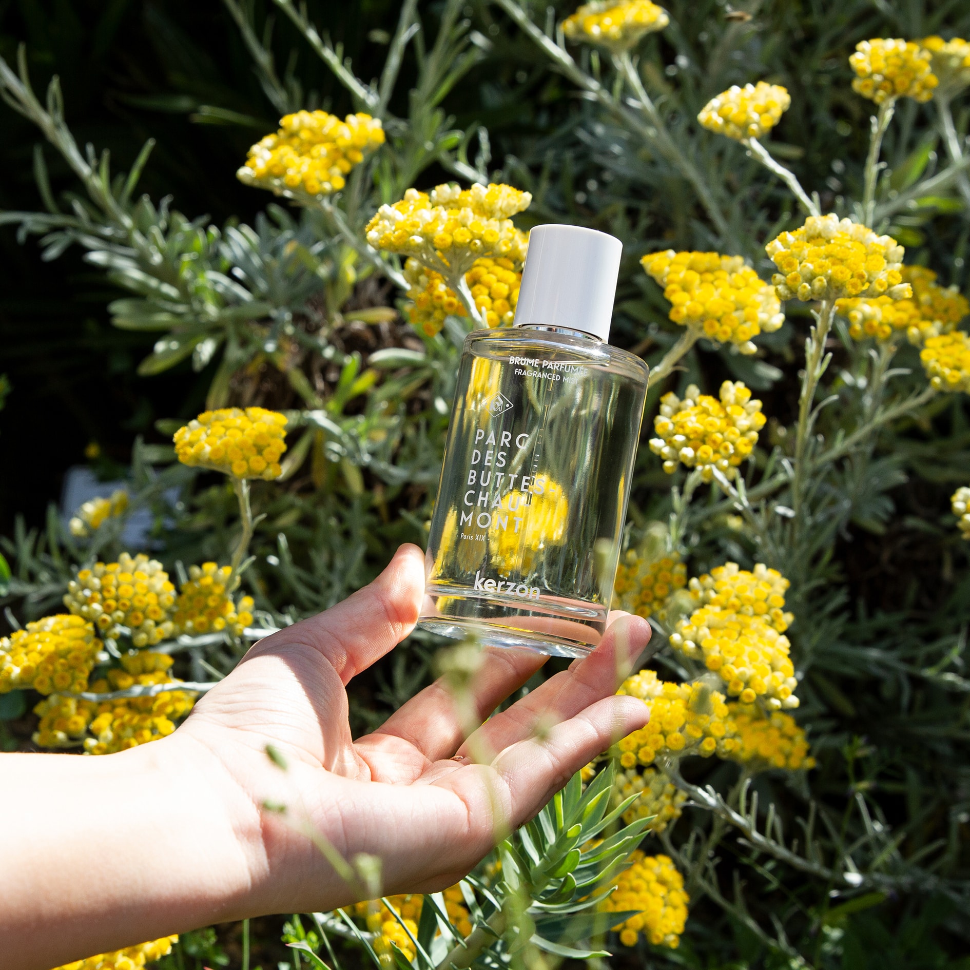 Pulverizeaza cateva sprayuri din minunatul parfum Parc des Buttes-Chaumont, de la Kerzon Paris, pe rufe, haine, textilele din casa sau chiar pe pielea ta pentru a te teleporta in parcul francez.