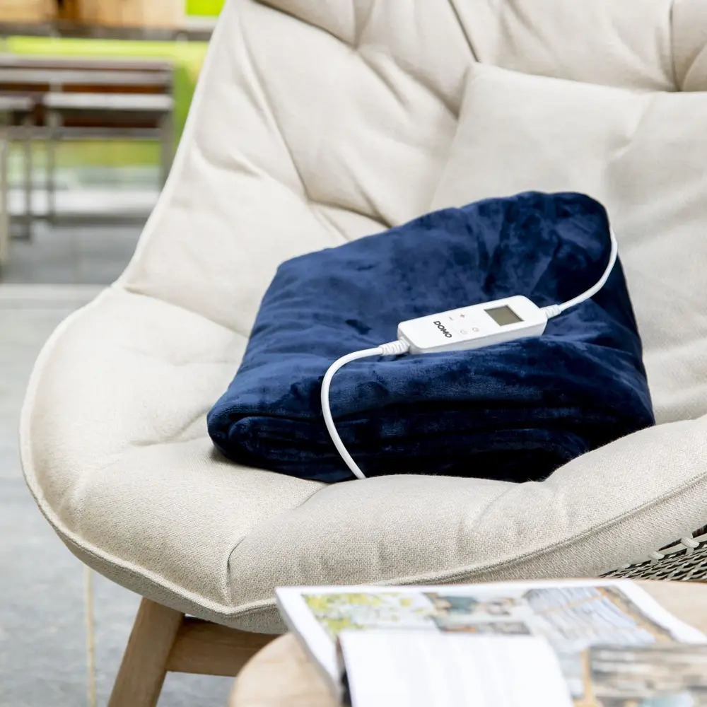 Patura cu incalzire electrica, de la brandul belgian DOMO, ofera momente de confort si relaxare in sezonul rece, fiind perfecta pentru drumetii cu cortul, rulota sau pur si simplu daca nu vrei inca sa pornesti caldura sau sa folosesti dispozitive care consuma mult curent.