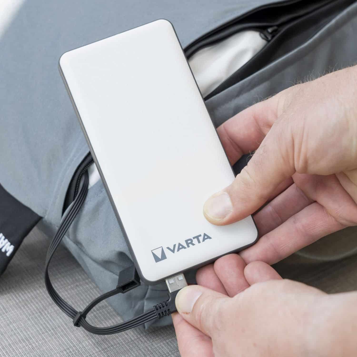 Include o baterie externa Varta de 20.000 mAh. cu o autonomie de pana la 10 ore, care poate fi folosita pentru a-ti incarca telefonul sau alte device-uri. Are 3 trepte de temperatura cuprinse intre 50-75°C, iar toate acestea se pot selecta foarte usor cu ajutorul unui buton.