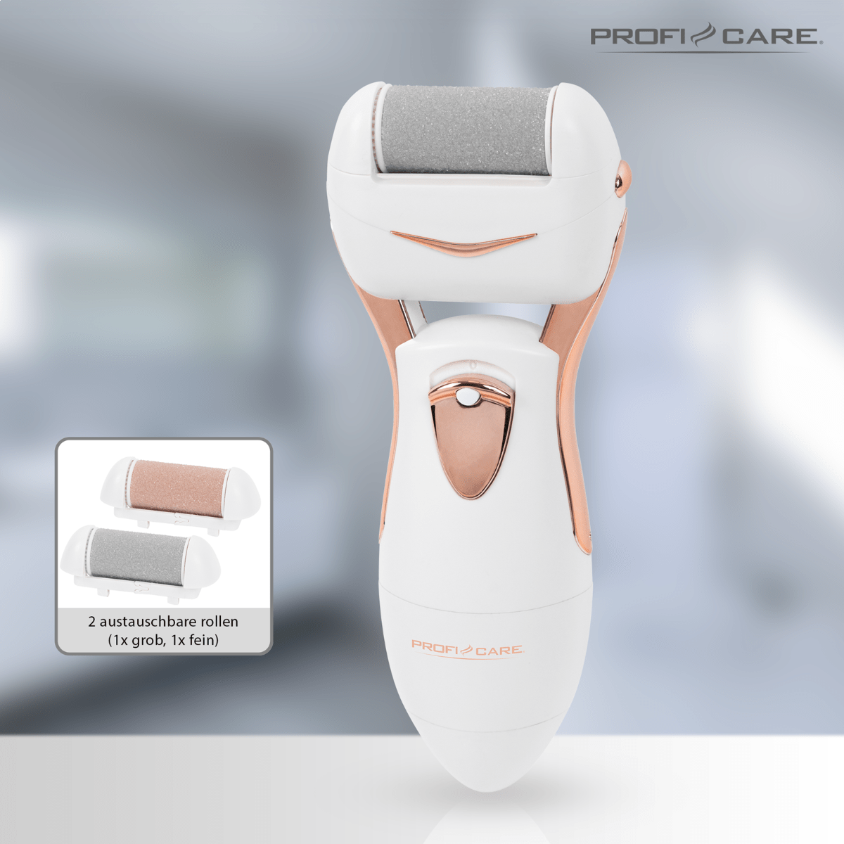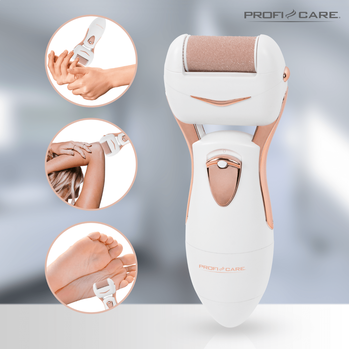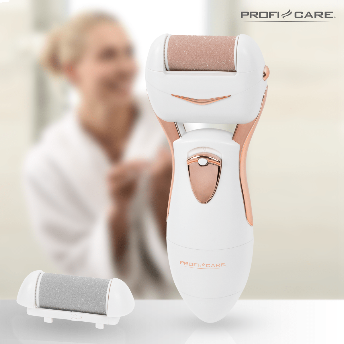 Dispozitivul de la Proficare este dotat cu 2 capete interschimbabile pentru intensitati diferite ale exfolierii. Astfel, aparatul indeparteaza si netezeste pielea uscata si aspra de pe diferite zone ale corpului cum ar fi picioare, maini sau coate.