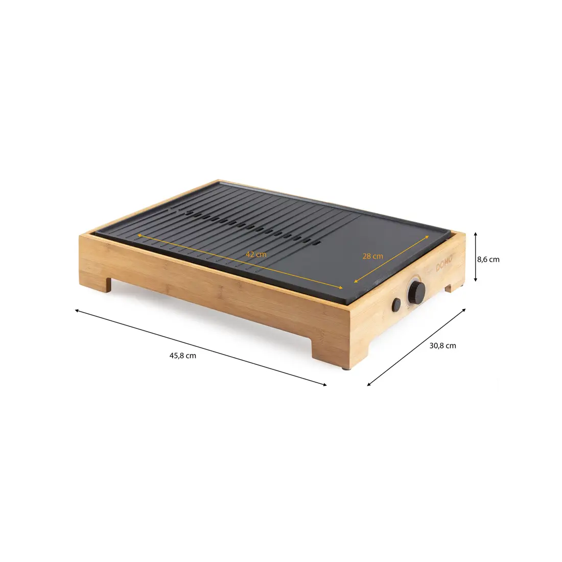 Bucura-te de experienta unui grill, indiferent de anotimp, cu plita electrica Plancha Bamboo de la DOMO! Suprafata delimitata iti ofera libertatea de a gati carnea pe partea neteda in timp ce legumele se rumenesc pe partea striata.