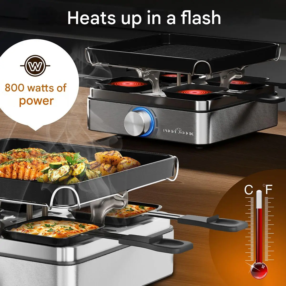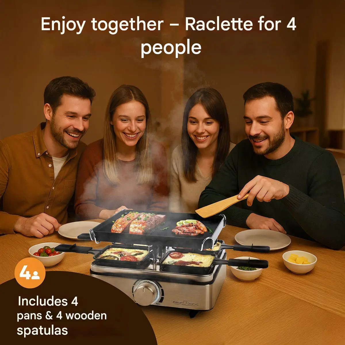 Modern si practic, aparatul cu raclette de la ProfiCook este aliatul tau pentru o seara placuta, in jurul mesei, in familie sau cu prietenii.