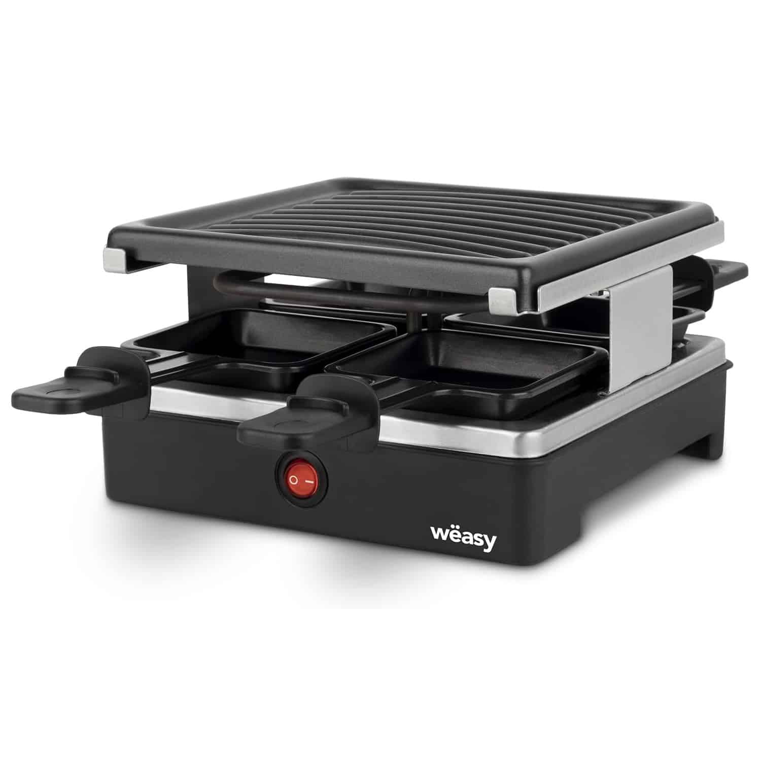 Deveniti sufletul petrecerii cu ajutorul plitei pentru grill si raclette de la Weasy! Plita are o suprafata antiaderenta pentru gatit si 4 tigai raclette potrivite pentru o masa rafinata in familie. Puteti pregati o gama larga de alimente precum peste, carne, legume, fructe de mare sau sa gratinati branzeturi.