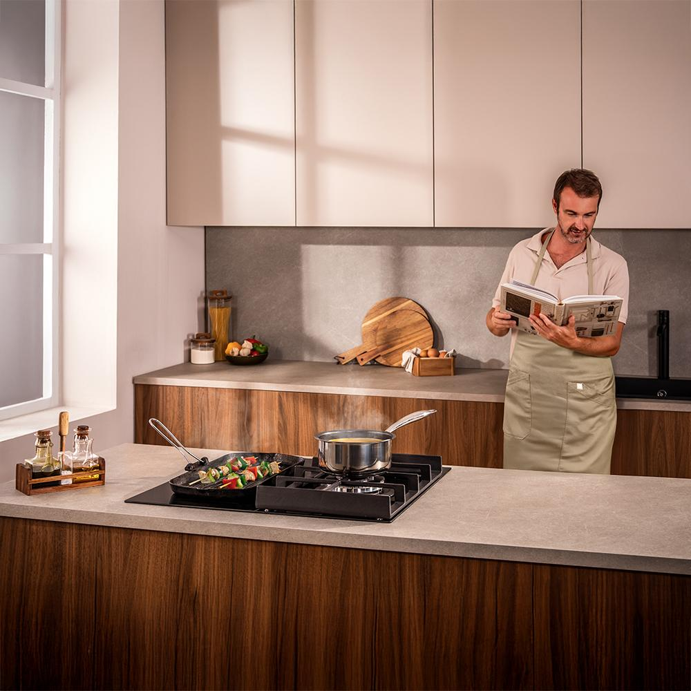 Zona cu gaz este dotata cu un arzator de tip WOK cu tripla coroana de 3.4 kW, ideala pentru mancaruri ce necesita temperaturi ridicate. Aceasta suprafata iti permite sa experimentezi cu preparate in stil asiatic, demne de un restaurant de renume.