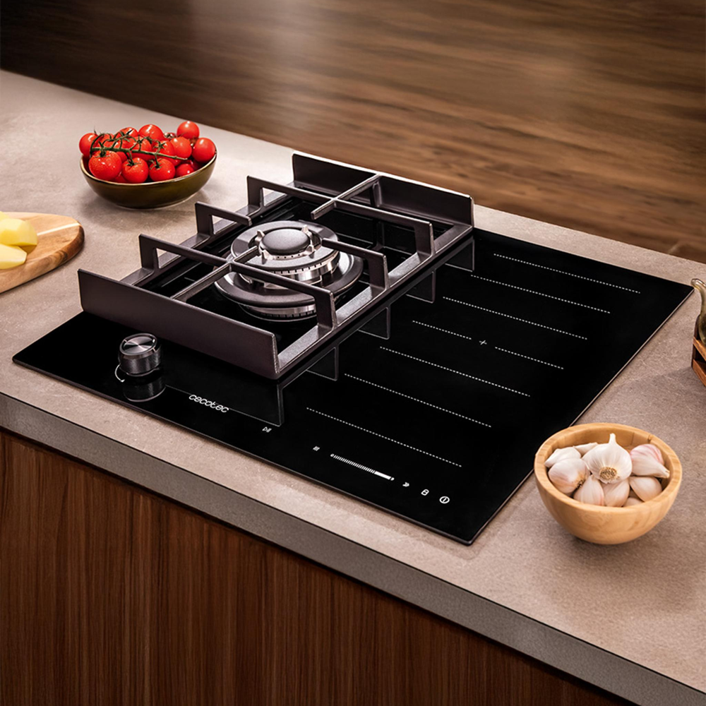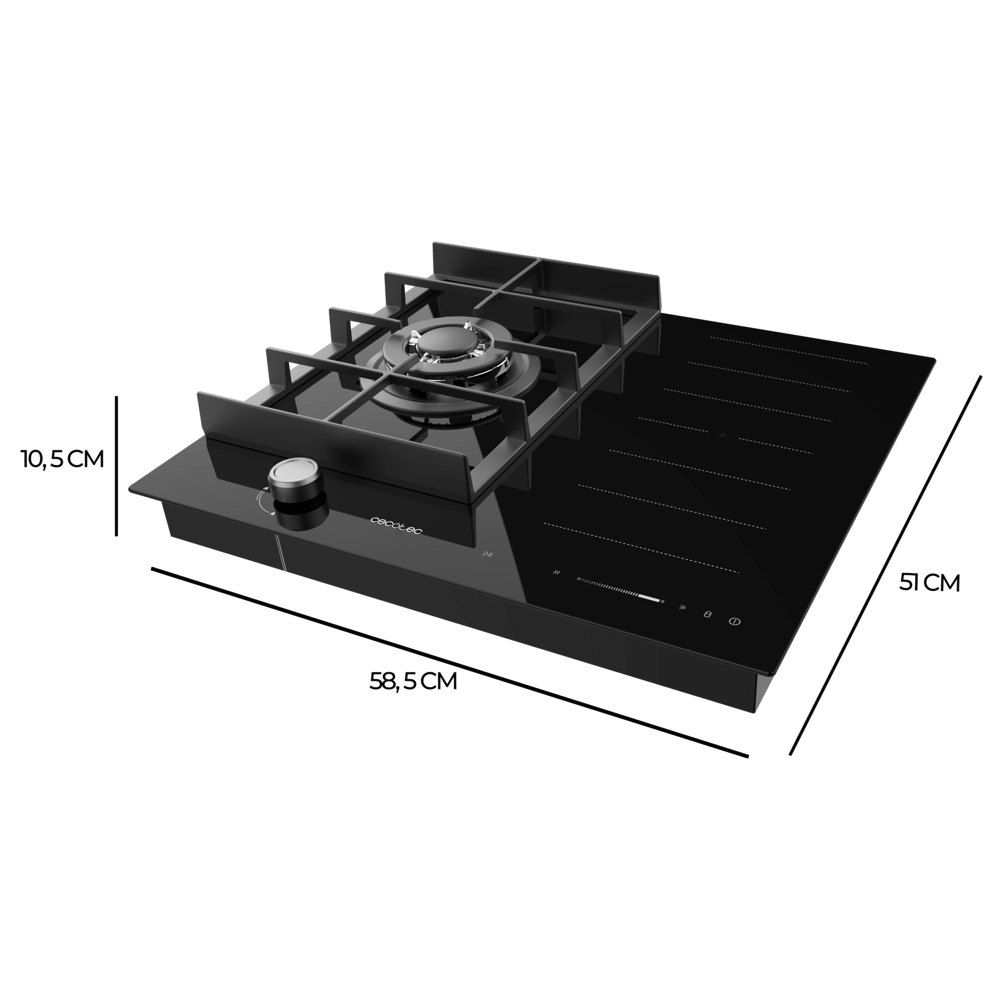Plita incorporabila hibrid, gaz si inductie, Cecotec, Bolero Squad Hybrid, 58 cm, negru