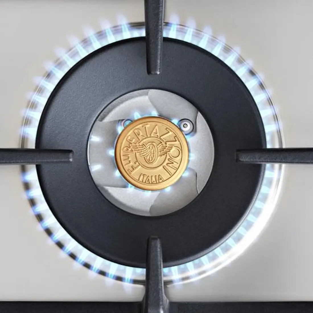 Conceputa pentru gatit precis si sigur, aceasta plita pe gaz Bertazzoni de 90 cm, este echipata cu cinci arzatoare, dintre care unul wok dual de 5 kW ce adauga un plus de versatilitate gatitului tau.