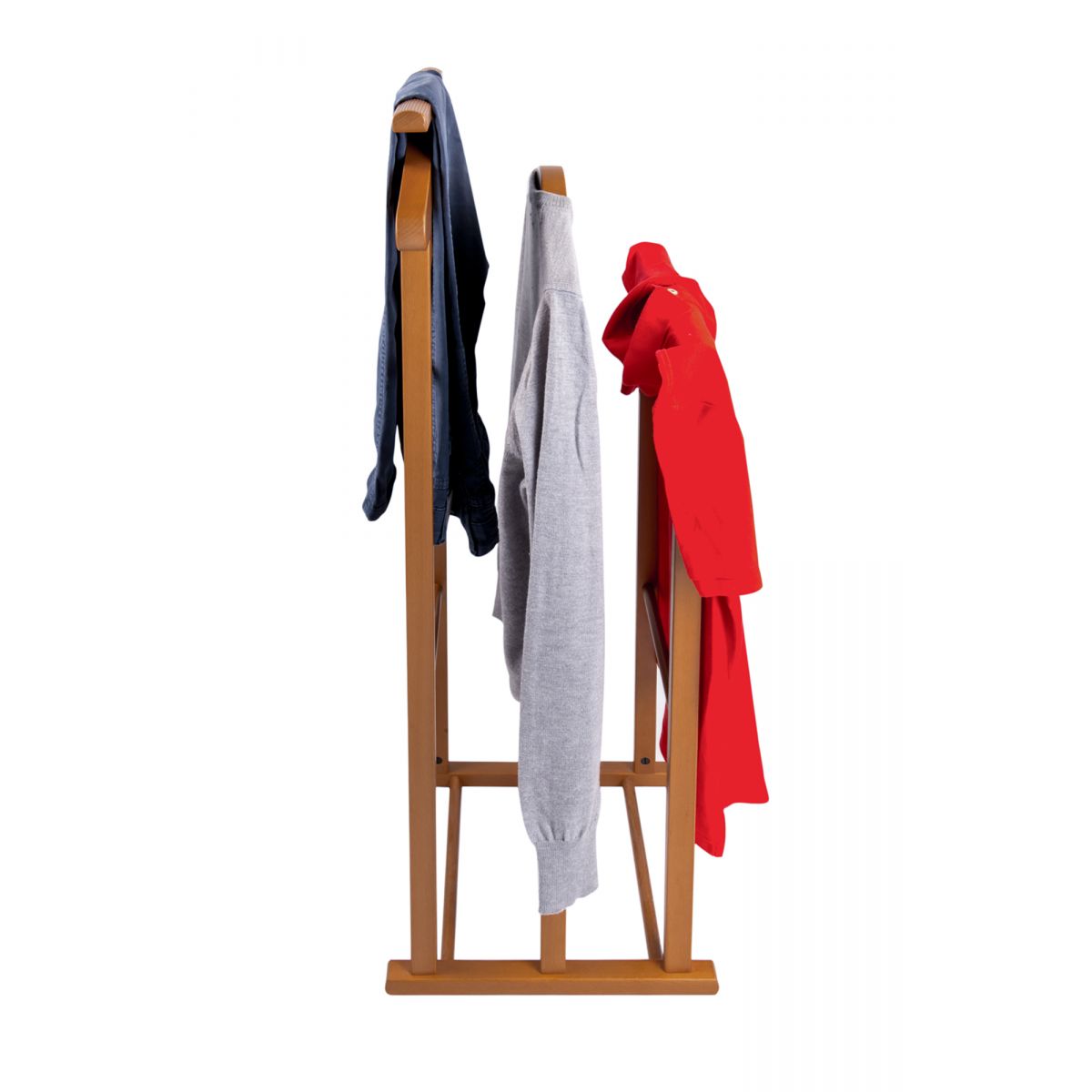 Avand o structura din lemn masiv de fag, suportul de haine este destinat utilizarii zilnice. Cu un design practic si ideal pentru depozitare eficienta, avand un cadru pentru pantaloni si 2 umerase, Maxi este ideal pentru oricine.