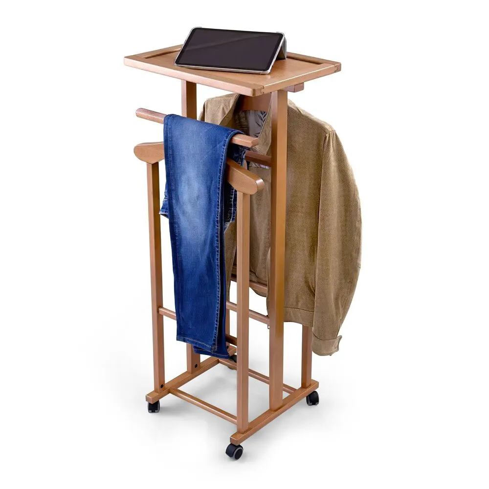 Suportul pentru haine Smart dispune de o structura din lemn masiv de fag, ce asigura durabilitate pentru utilizare zilnica. Mai mult, datorita rotilor mobile poti transporta portmantoul cu usurinta, pentru a avea mereu garderoba la indemana.