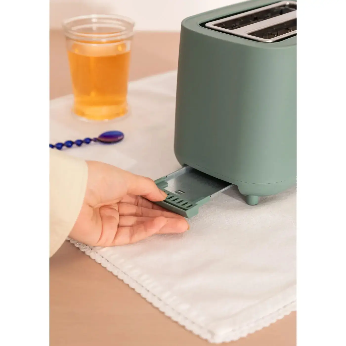 Toasterul are 6 trepte de rumenire care indeplinesc orice cerinta culinara, iar carcasa robusta si tava pentru firimituri faciliteaza curatarea sa.