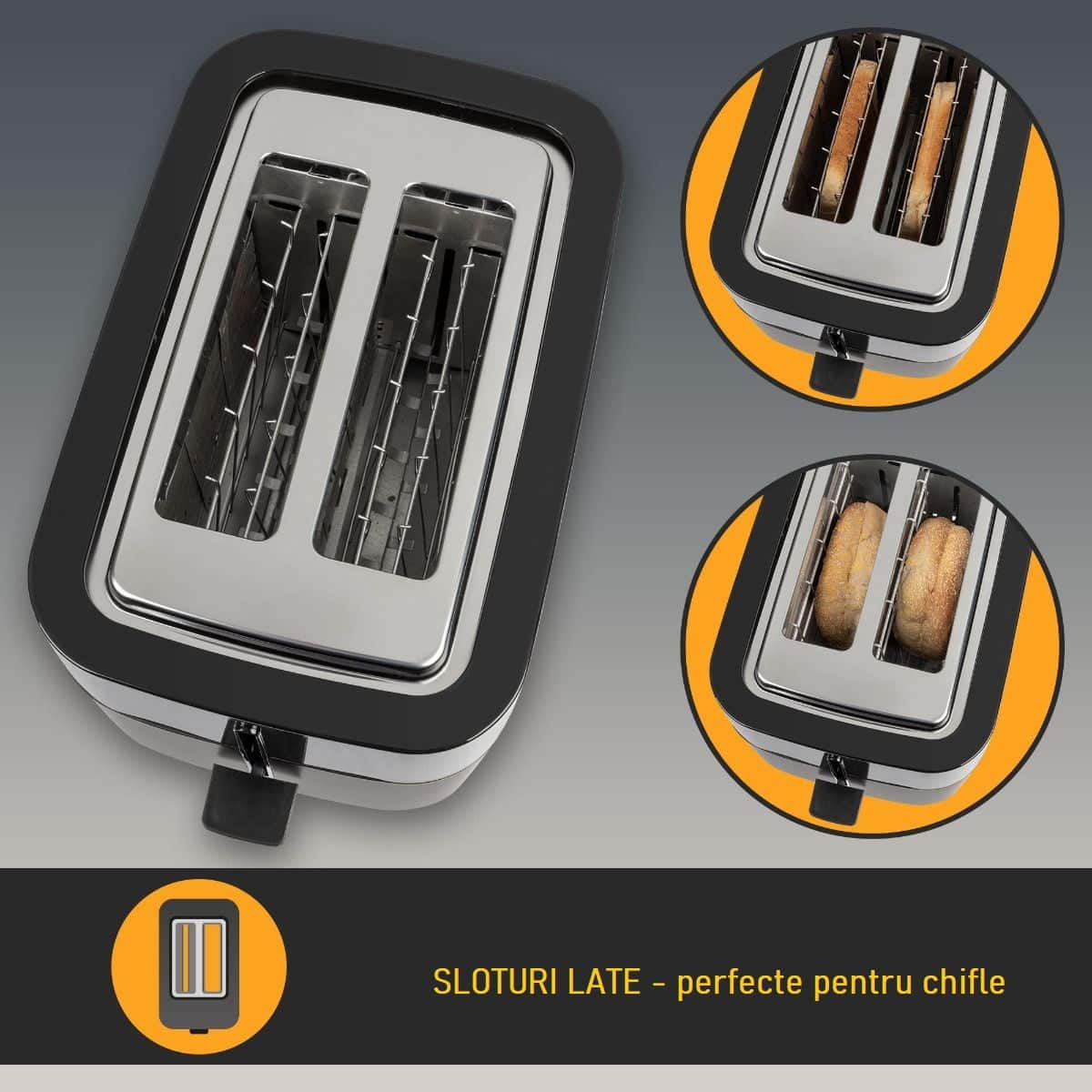 Sloturile extra-late (40 mm) sunt gandite pentru a putea rumeni si chifle, baghete, covrigi etc.