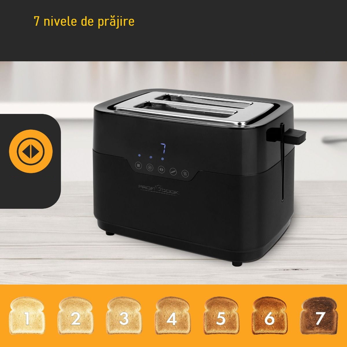 7 niveluri de rumenire si 4 programe prestabilite