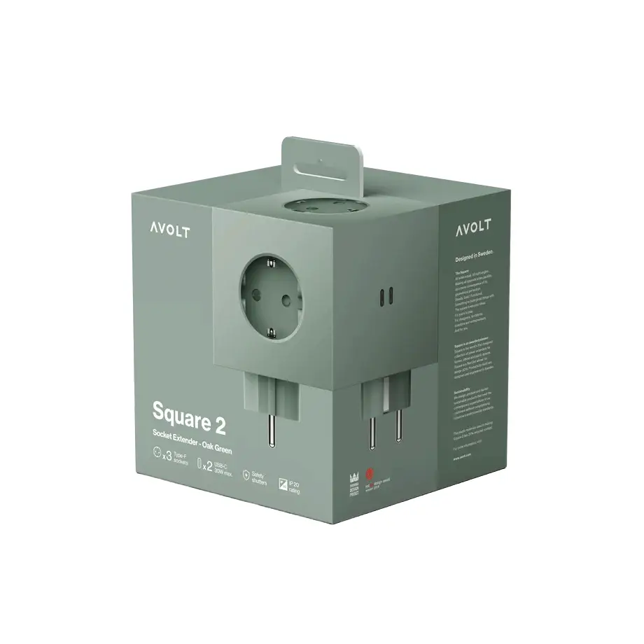 Prelungitor cubic, AVOLT, Square 2, 3 prize, 2xUSB-C, sage