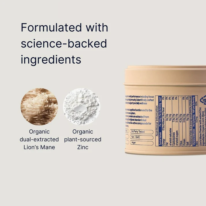Aceasta pudra este o fuziune echilibrata intre extractul de Lion’s Mane si zinc, contribuind la un sistem imunitar sanatos si oferind un impuls natural pentru creier, cat si pentru corp.