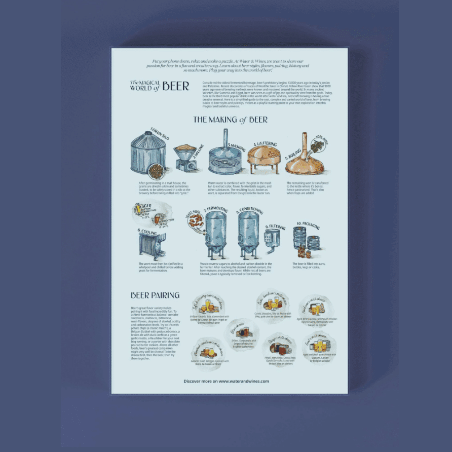 Porniti intr-o aventura captivanta a berii cu puzzle-ul de la Water&Wines, atent studiat de specialisti. Acest puzzle ilustrat artistic, dedicat uneia dintre cele mai iubite bauturi din lume, va va duce intr-o calatorie prin peste 100 de tipuri de bere.