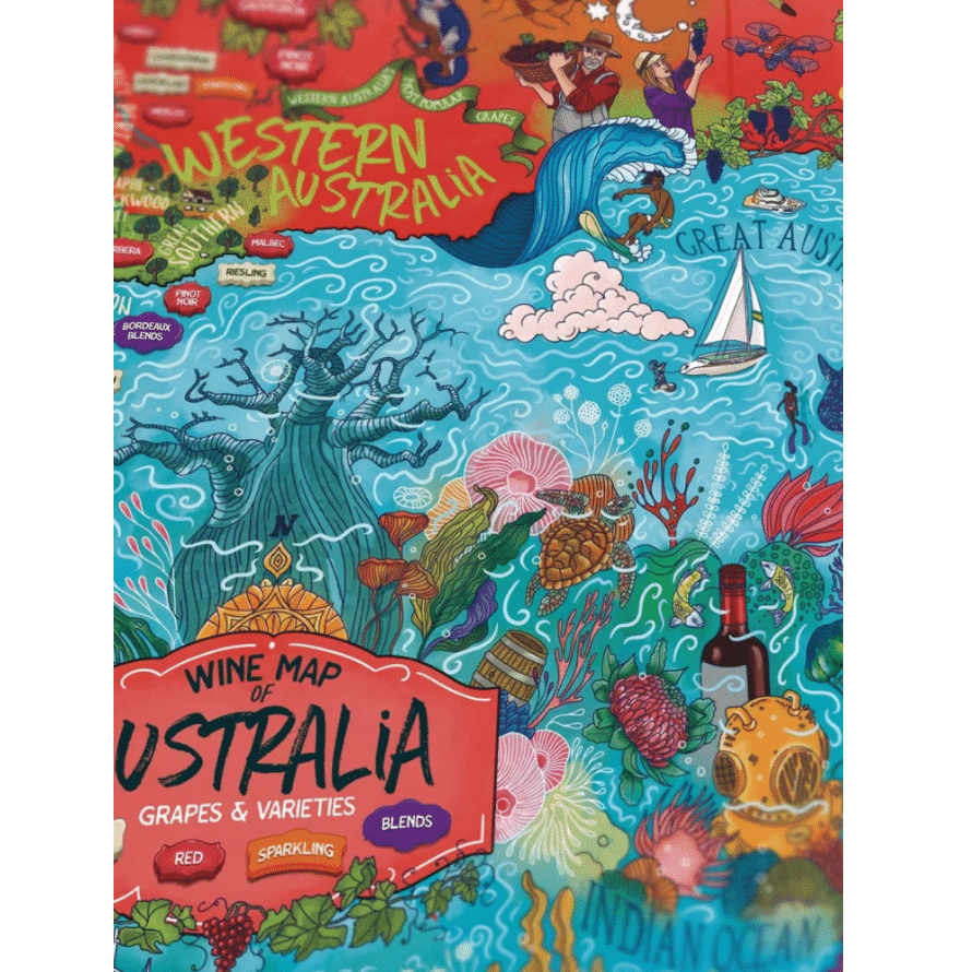 Descoperiti lumea vibranta a vinurilor australiene cu acest puzzle ce iti va completa colectia. Renumita pentru Shiraz si Pinot Noir, tara gazduieste peste 60 de regiuni viticole. Atent studiat de somelieri experti si ilustrat manual, puzzle-ul evidentiaza principalele regiuni producatoare de vin si soiuri locale de struguri din Australia, de la faimoasa Vale Barossa pana la Valea Yarra, cu clima rece.