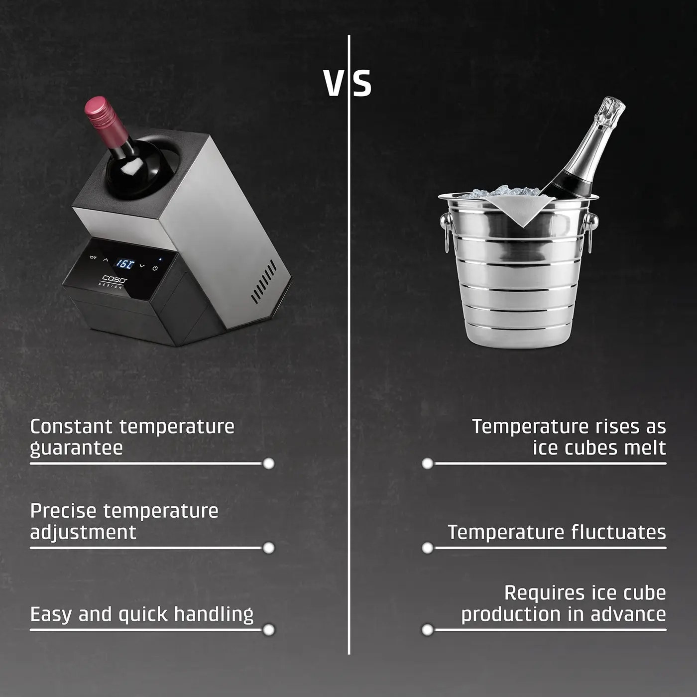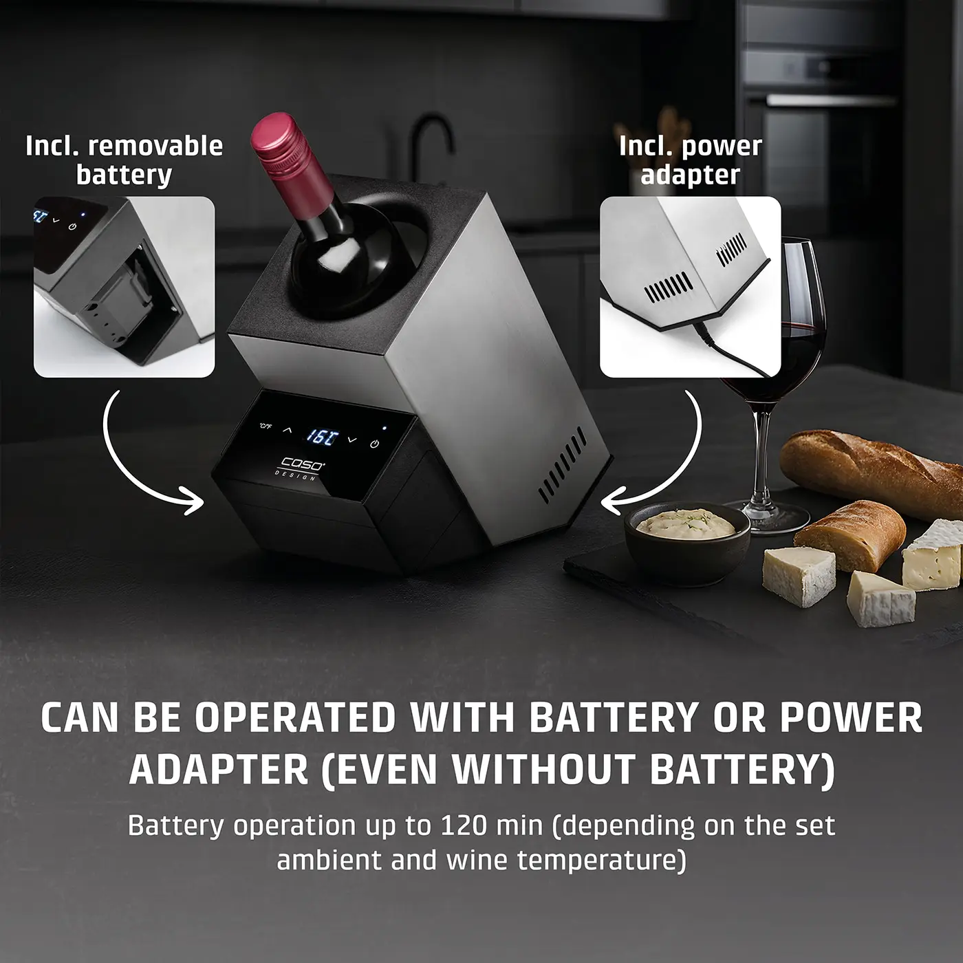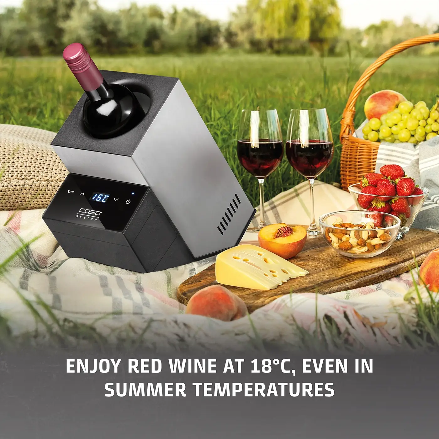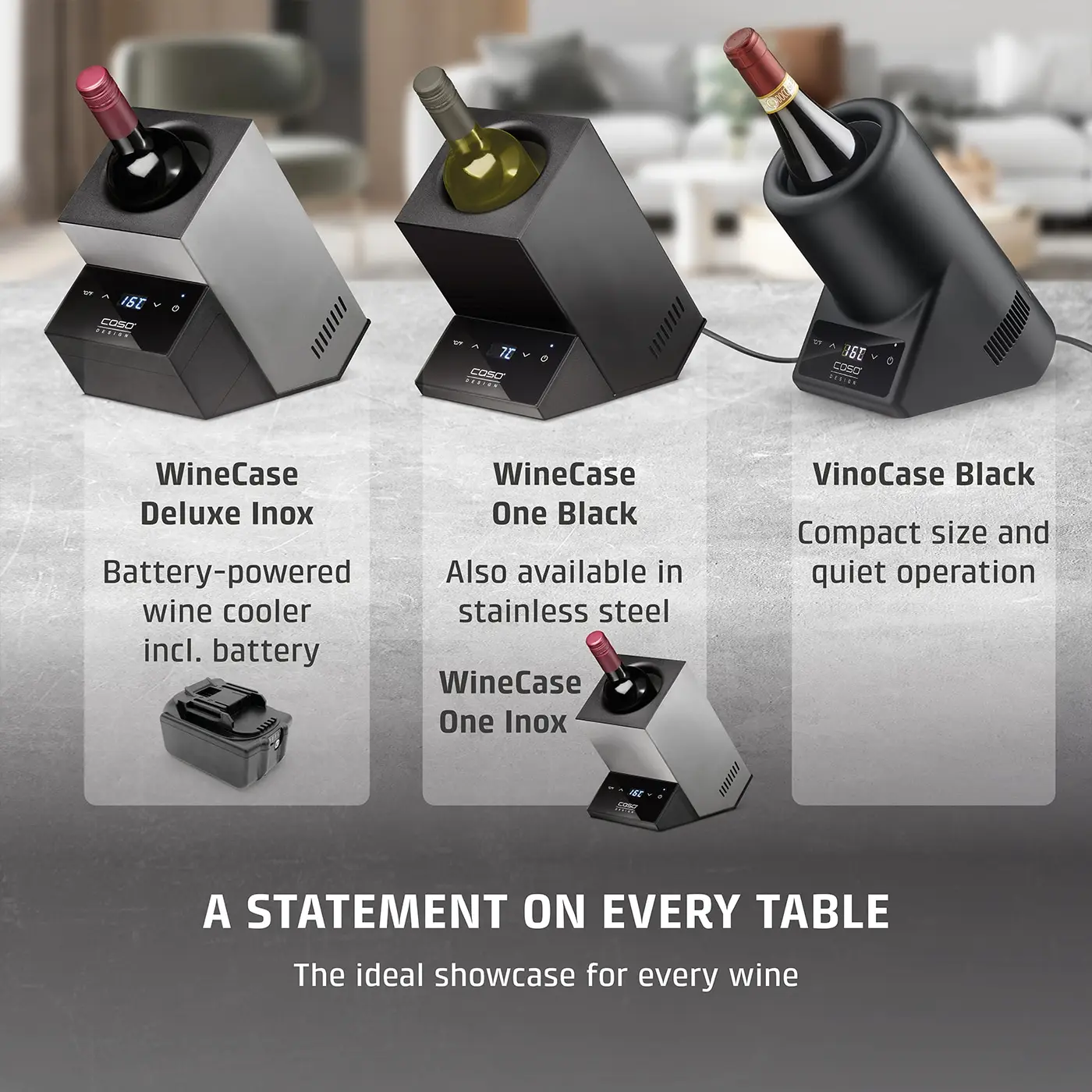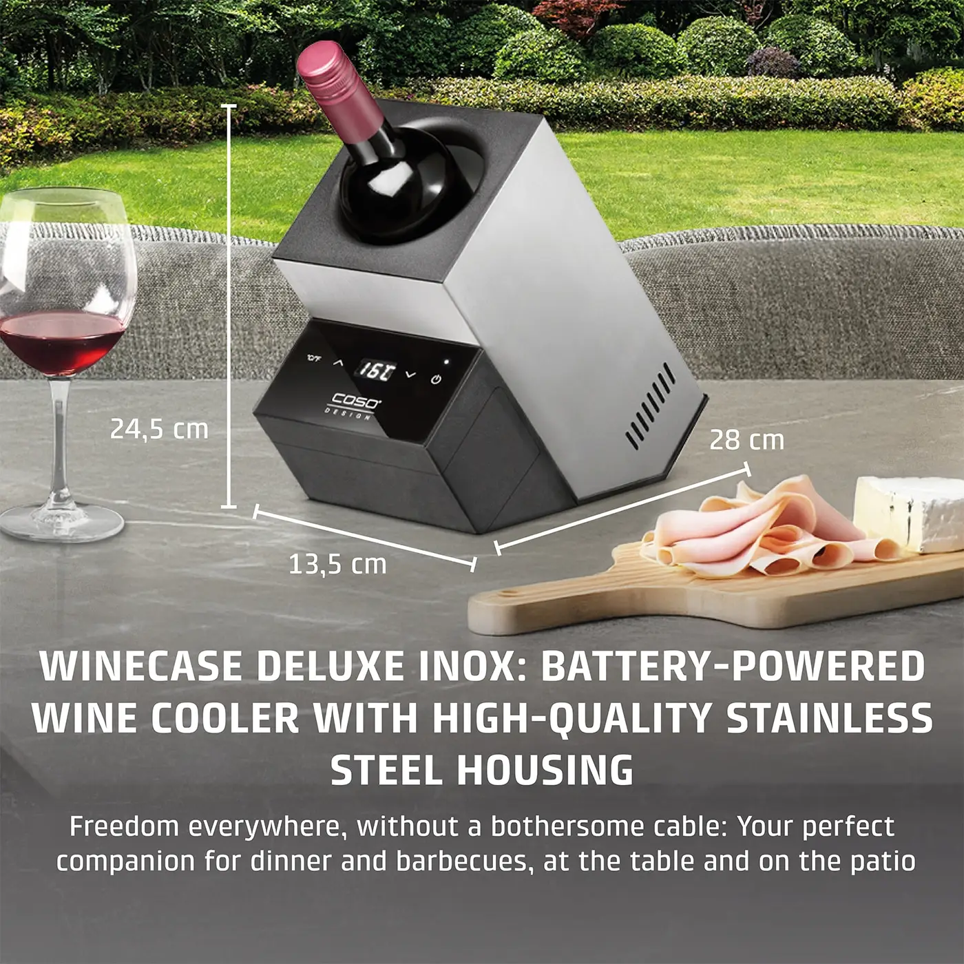 Racitorul de vin portabil WineCase Deluxe de la Caso Germany, de inalta calitate si cu un design elegant, fabricat din otel inoxidabil, vinul este temperat in mod optim.