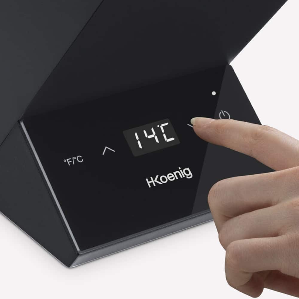 Racitorul de vin ofera spatiu pentru o sticla si este reglabil electronic, putand sa-i setati o temperatura intre 5 si 18°C, in trepte de 1°C, in functie de bautura, cu ajutorul panoului de control cu senzor tactil.