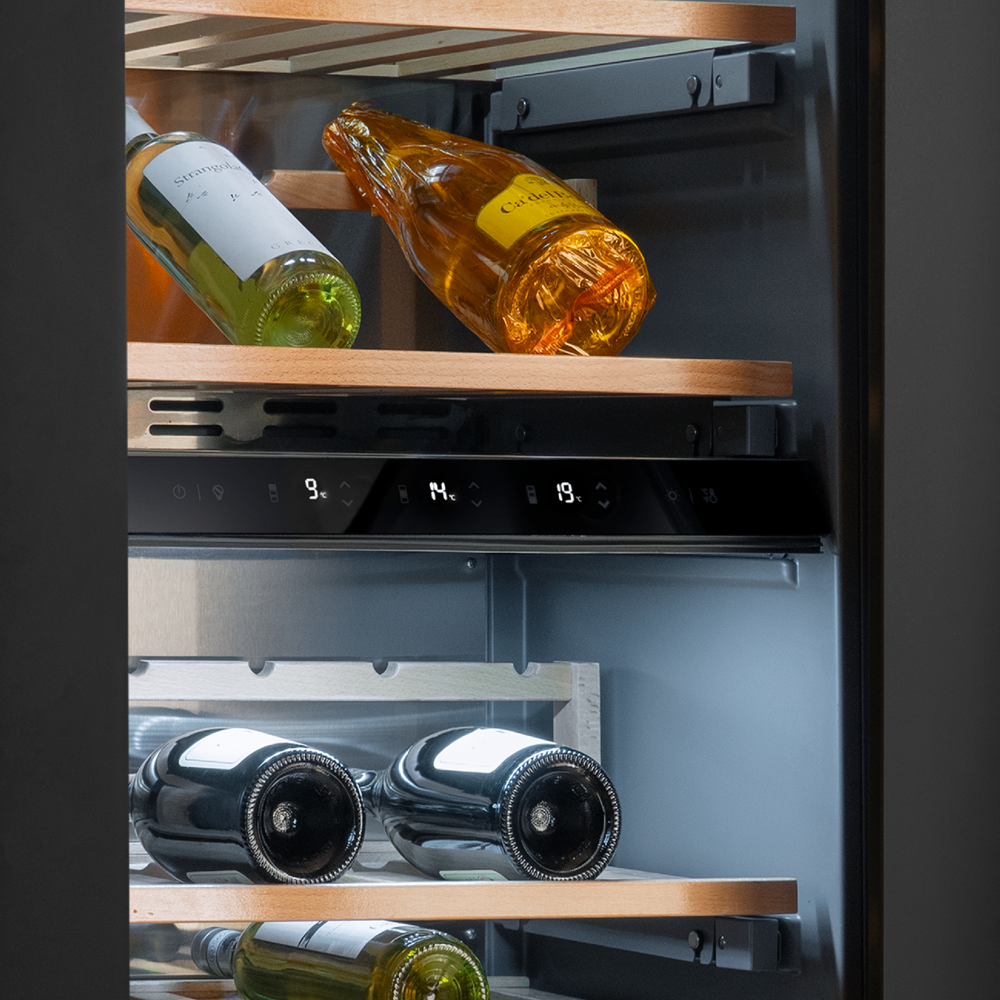 Proiectat pentru a pastra vinul in conditii optime, racitorul ofera control precis al temperaturii datorita celor 3 zone de racire. Cu tehnologii de ultima generatie de depozitare, aparatul incorporabil pastreaza caracterul specific al vinului sau sampaniei.