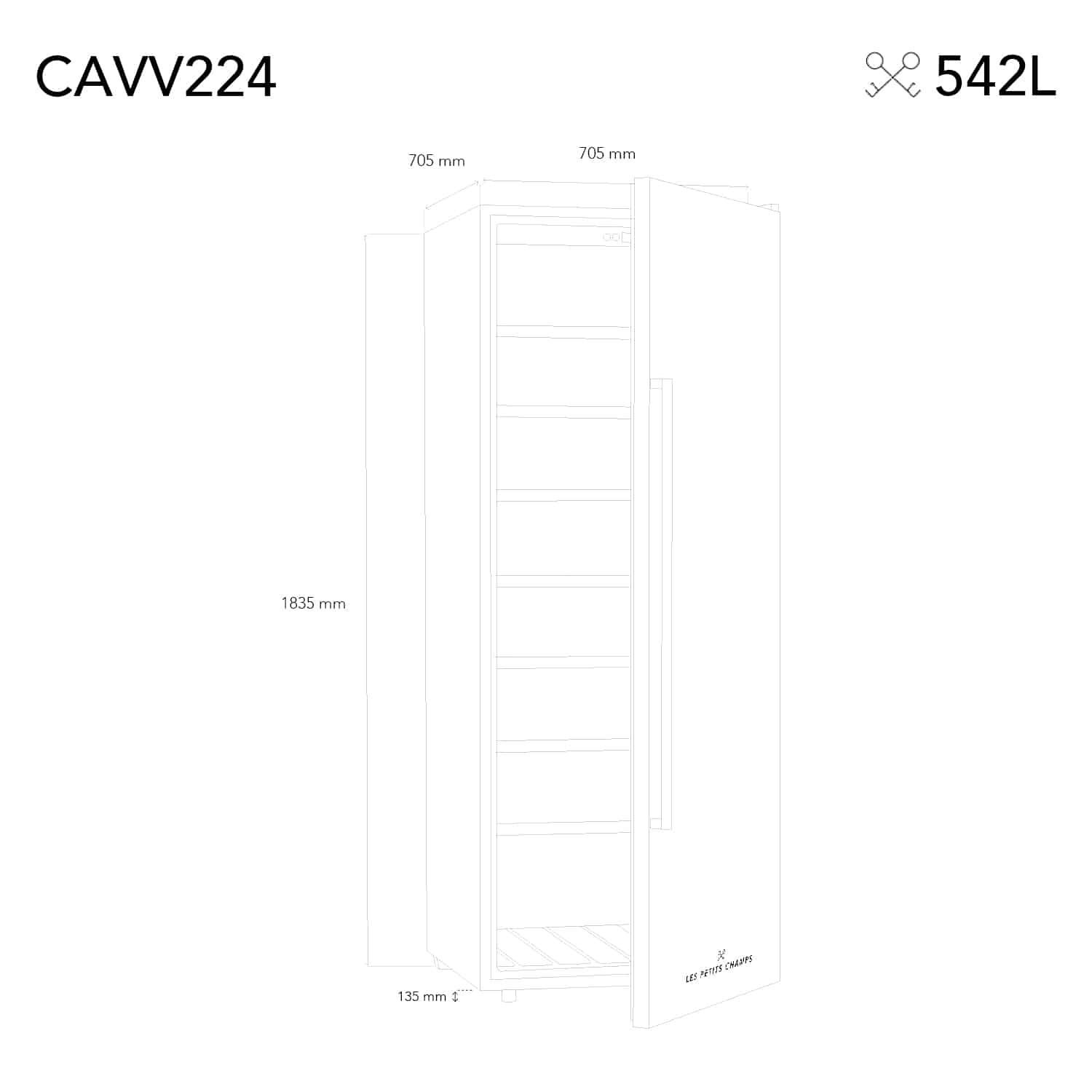 Cu un design elegant, racitorul de vin Les Petits Champs poate fi amplasat cu usurinta in orice locuinta, restaurant sau hotel si poate stoca pana la 224 sticle din vinul dumneavoastra preferat.