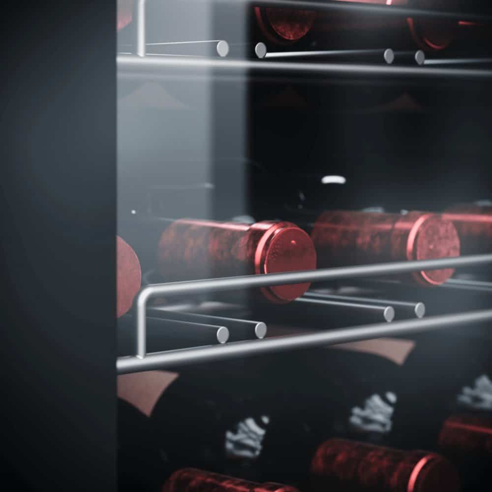 Cu ajutorul tehnologiei avansate de incalzire si racire, temperatura selectata este atinsa rapid si mentinuta in mod fiabil. Sistemul eficient de circulatie a aerului creeaza un climat ideal in care vinul isi poate dezvolta in mod optim buchetul si aroma.