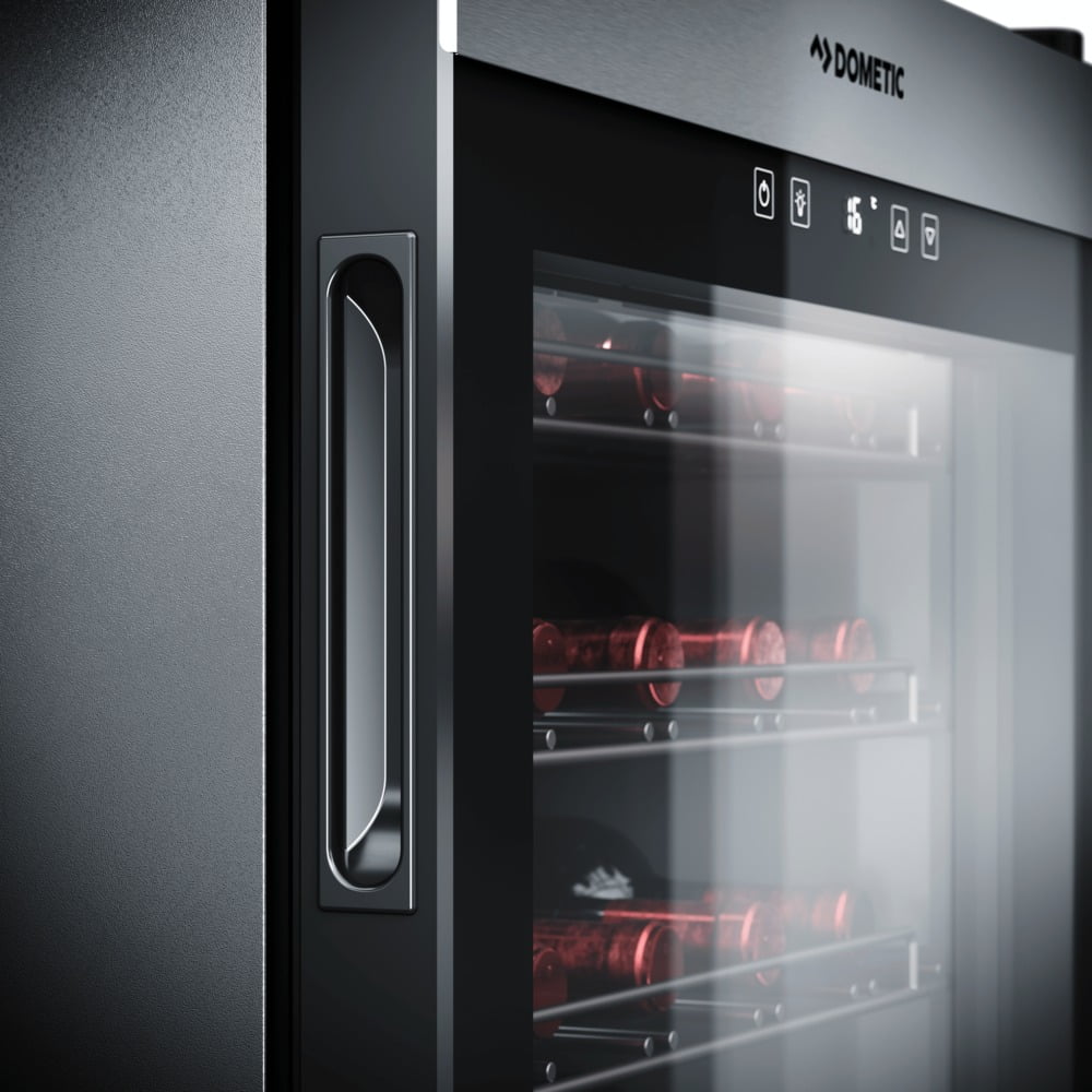 Racitorul de vin C35F de la Dometic, fabricat din materiale premium, asigura climatul perfect pentru depozitarea vinului. Dotat cu compresor si cu o singura zona de racire, acesta poate gazdui pana la 35 de sticle Bordeaux la o temperatură cuprinsa intre 5 °C si 22 °C. Usa din sticla „Low Emmision”, realizata din trei straturi rezistente la razele daunatoare UV, asigura pastrarea aromelor in conditii optime.