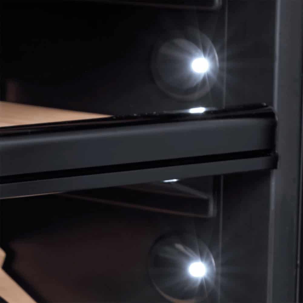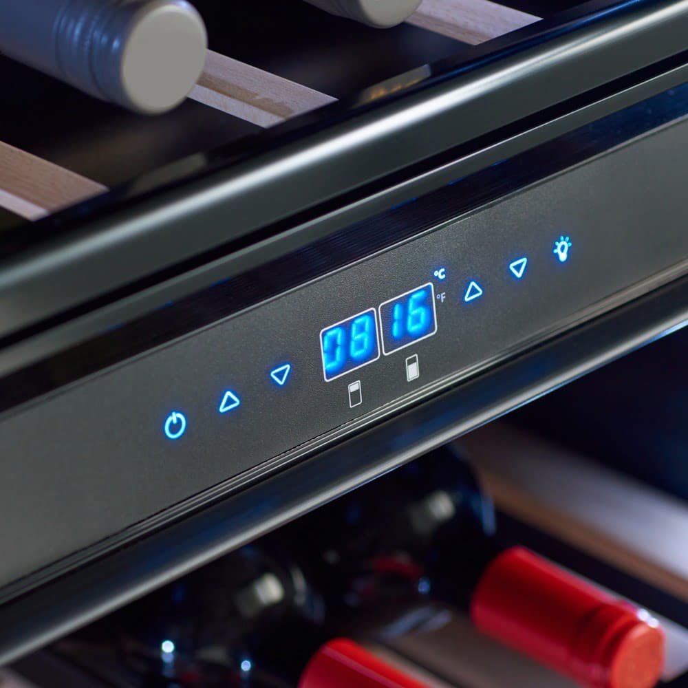 Cu ajutorul tehnologiei avansate de incalzire si racire, temperatura selectata este atinsa rapid si mentinuta in mod fiabil. Sistemul eficient de circulatie a aerului creeaza un climat ideal in care vinul isi poate dezvolta in mod optim buchetul si aroma.