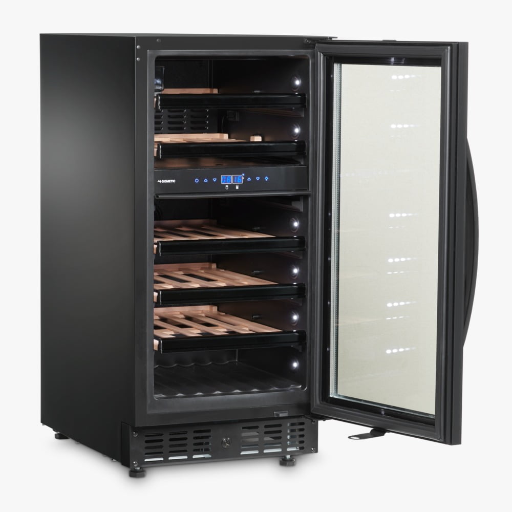 Racitorul de vin E28FG de la Dometic, fabricat din materiale premium, asigura climatul perfect pentru depozitarea vinului. Dotat cu compresor si cu o singura zona de racire, acesta poate gazdui pana la 28 de sticle Bordeaux la o temperatura cuprinsa intre 5 °C si 20 °C. Usa din sticla „Low Emmision”, realizata din trei straturi rezistente la razele daunatoare UV, asigura pastrarea aromelor in conditii optime.