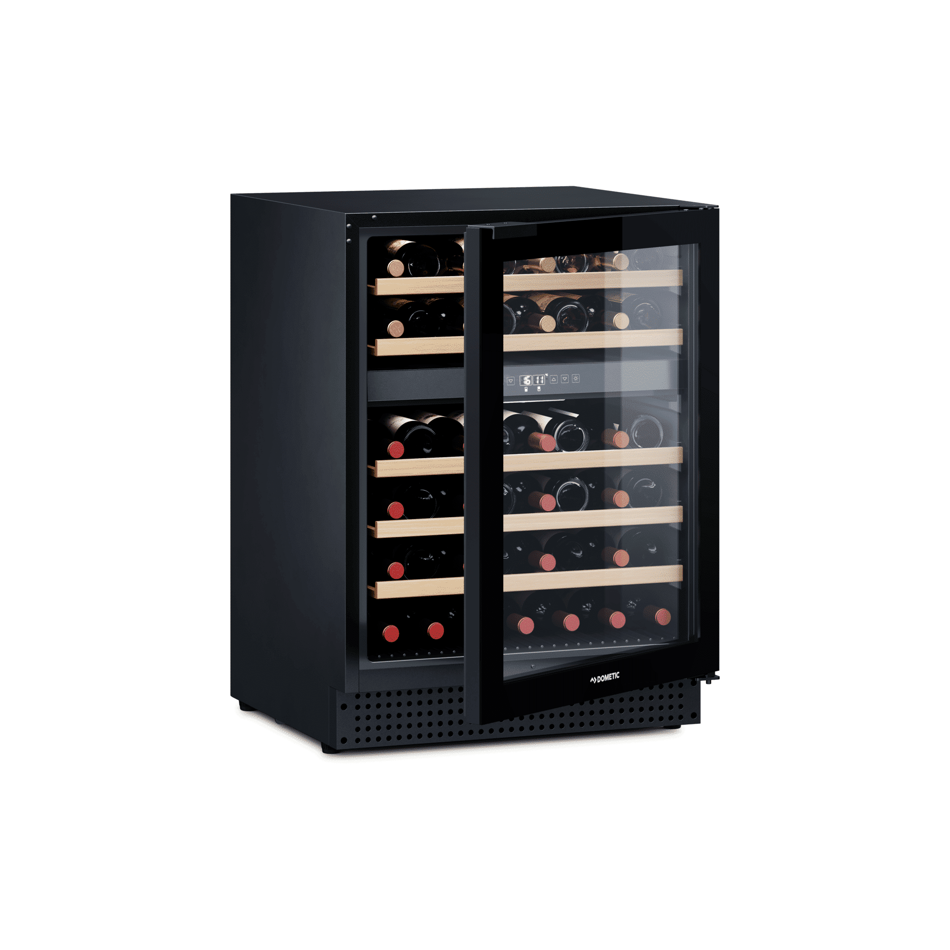 Racitorul de vin D46B de la Dometic, fabricat din materiale premium, asigura climatul perfect pentru depozitarea vinului. Dotat cu compresor si cu 2 zone de racire, acesta poate pastra pana la 46 de sticle, la o temperatura cuprinsa intre 4°C si 22°C. Puteti separa vinurile albe de cele rosii, pentru a le pastra la temperaturi diferite. Usa din sticla, realizata din doua straturi rezistente la razele daunatoare UV, asigura pastrarea aromelor in conditii optime.