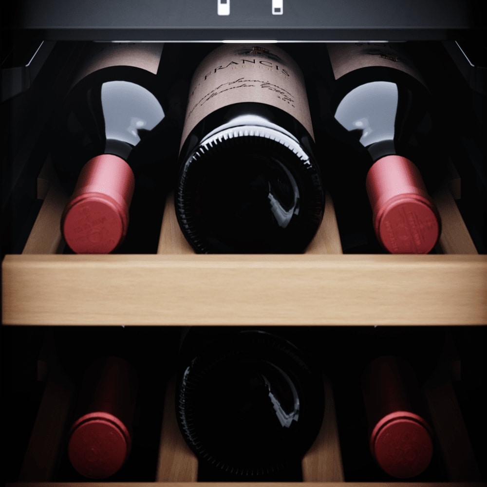Cu ajutorul tehnologiei avansate de incalzire si racire, temperatura selectata este atinsa rapid si mentinuta in mod fiabil. Sistemul eficient de circulatie a aerului creeaza un climat ideal in care vinul isi poate dezvolta in mod optim buchetul si aroma.