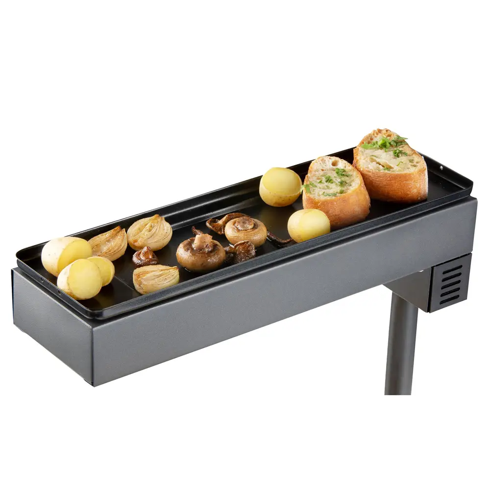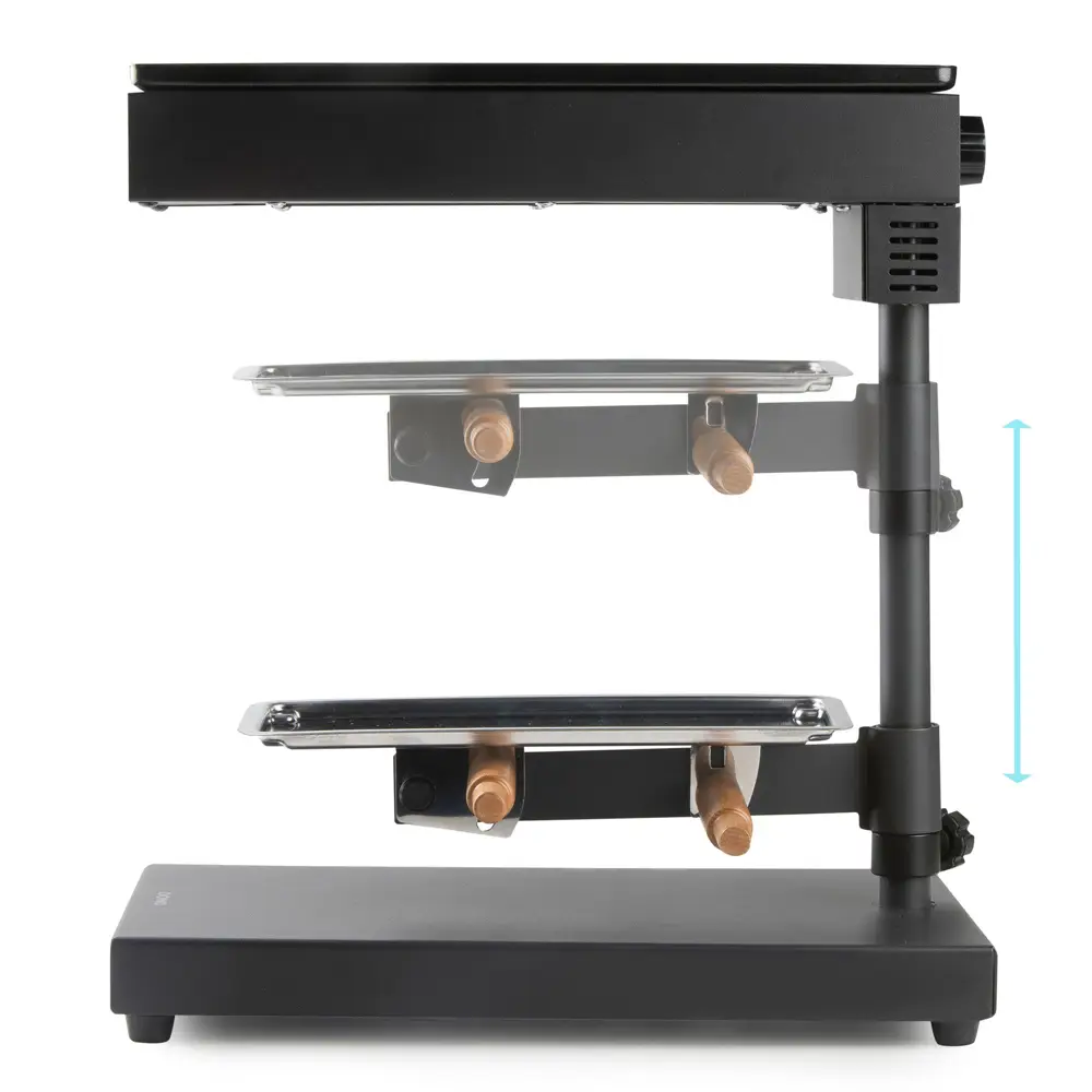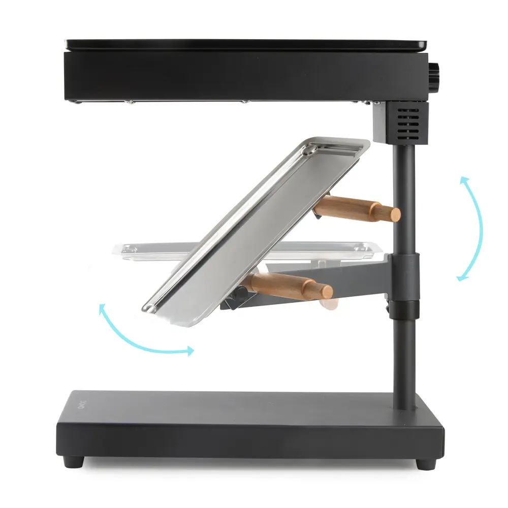 Acest raclette electric pentru branza eleveaza experienta oricari mese! Savureaza branza topita la temperatura ideala, datorita puterii de 1000 W si a sistemului uniform de incalzire. Deasupra aparatului se afla o plita grill, cu strat antiaderent si fara PFA, pentru a prepara in paralel si mici bucati de carne, legume sau paine, cu care vei diversifica experienta de fiecare data.