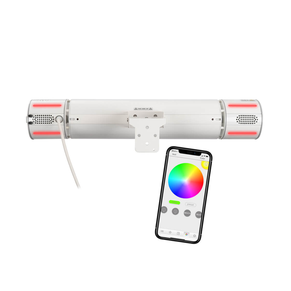 Mai mult, radiatorul are 2 boxe integrate de 3 inch si lumini ambientale LED, ceea ce ii dubleaza functia de incalzire cu cea de de boxa Bluetooth.