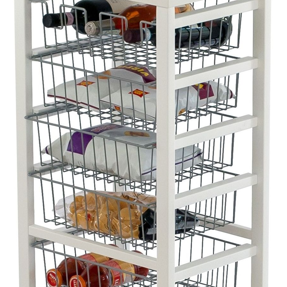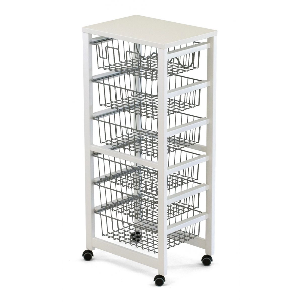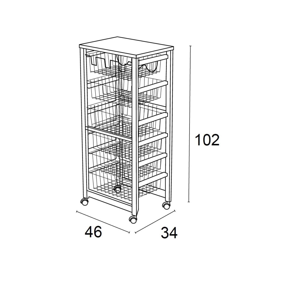 Avand o structura din lemn masiv de fag, raftul mobil este facut pentru uzura zilnica. Dispune de 6 cosuri glisante pentru fructe sau legume, un raft pentru sticle si un blat de lucru.