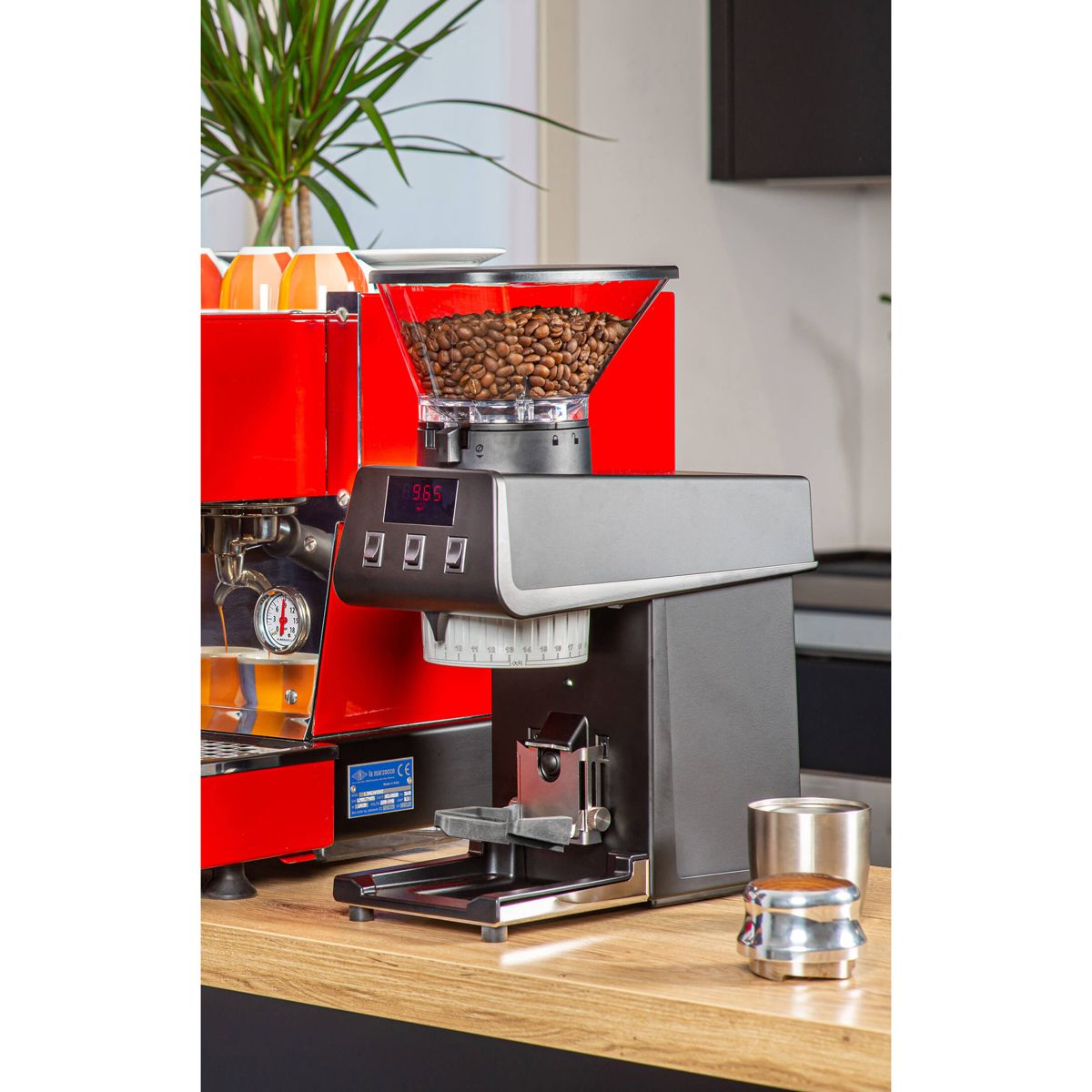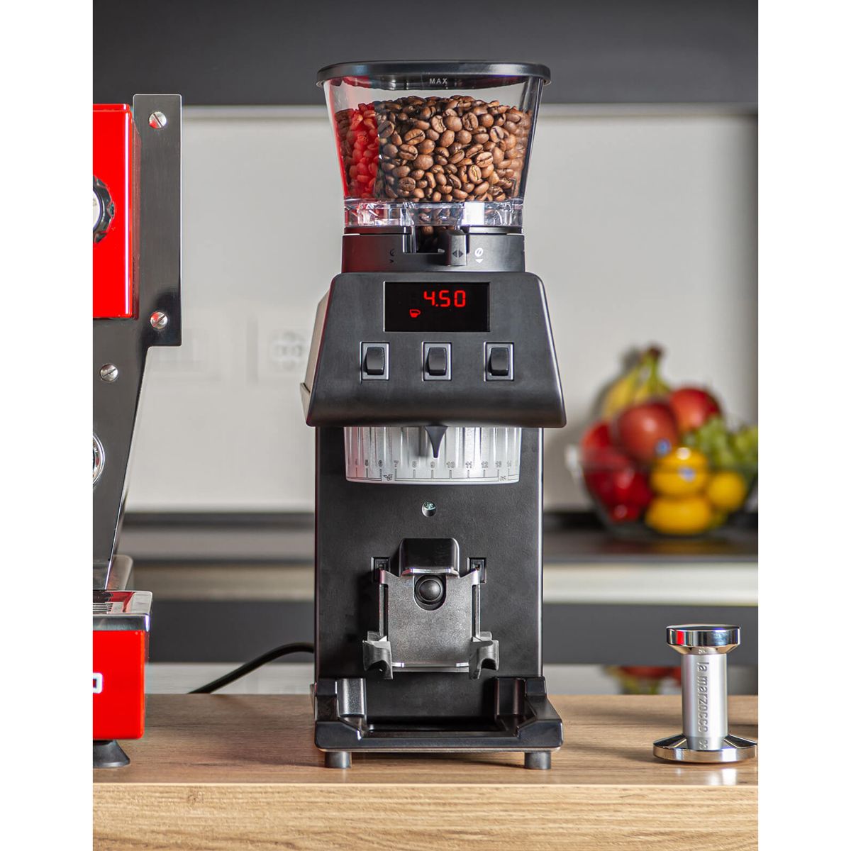 Este dotata cu un spectru larg de grade de macinare, astfel incat sa puteti prepara cafeaua in orice mod doriti, de la espresso pana la cafea la filtru, french press si multe altele. De asemenea, dosajul cafelei in portafiltru se poate personaliza foarte usor datorita comutatoarelor, iar odata ce atinge gramajul dorit se opreste automat.