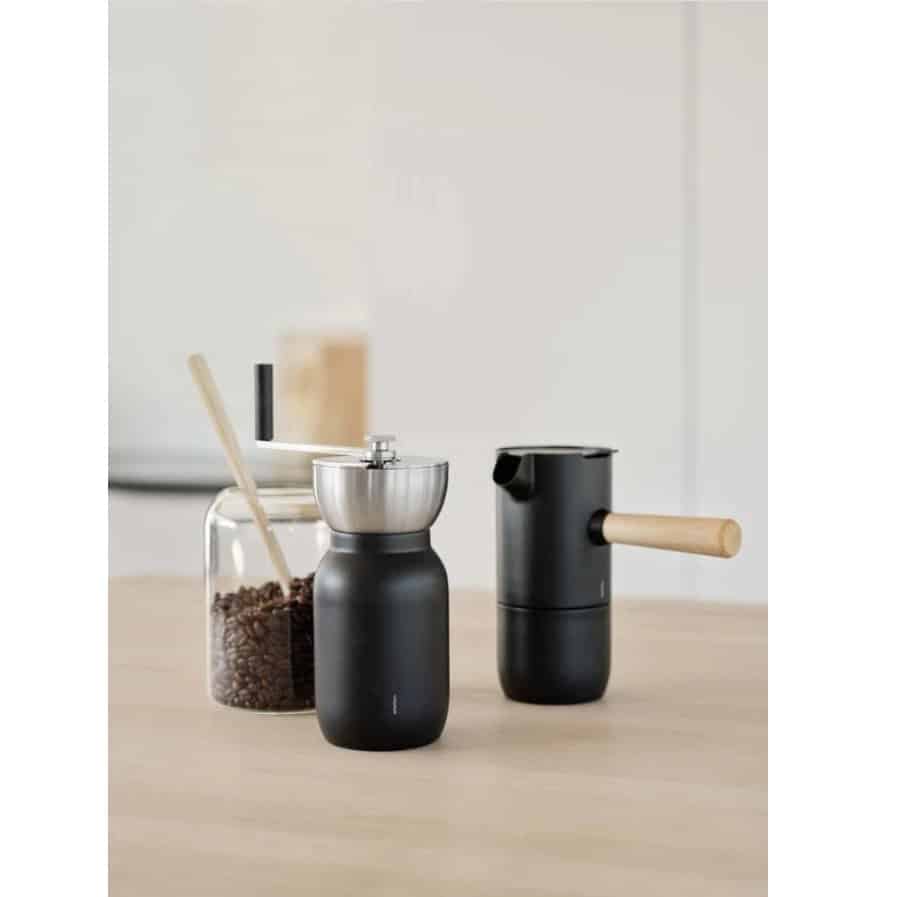 Rasnita manuala de cafea Collar, de la brandul danez Stelton, este o piesa remarcabila, creata de designerii italieni Daniel Debiasi si Federico Sandri, care au oferit intregi colectii siluete minimaliste, cilindrice si culori sobre, cu accente moderne.