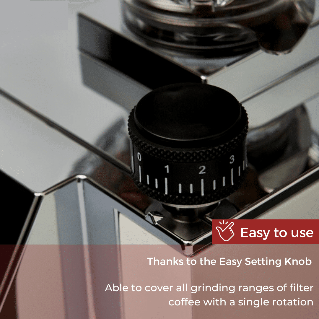 Rasnita electrica profesionala Mignon Zero Brew, de la brandul italian Eureka, este potrivita atat pentru industria HoReCa cat si rezidential. Aparatul pastreaza aromele si uleiurile esentiale ale cafelei, oferindu-va o cafea proaspata si aromata, gata de preparare.