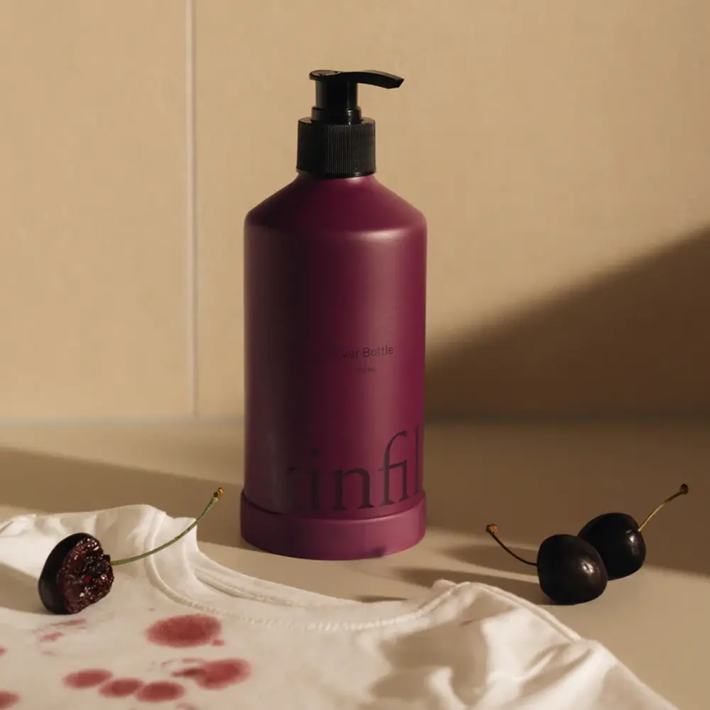 Recipientul reutilizabil cu pompa, de la brandul olandez Kinfill, este destinat folosirii impreuna cu sapunurile sau gelurile de dus, lotiuni pentru corp, chiar si detergentii de rufe, fiind conceput sa inlocuiasca recipientele din plastic de unica folosinta.
