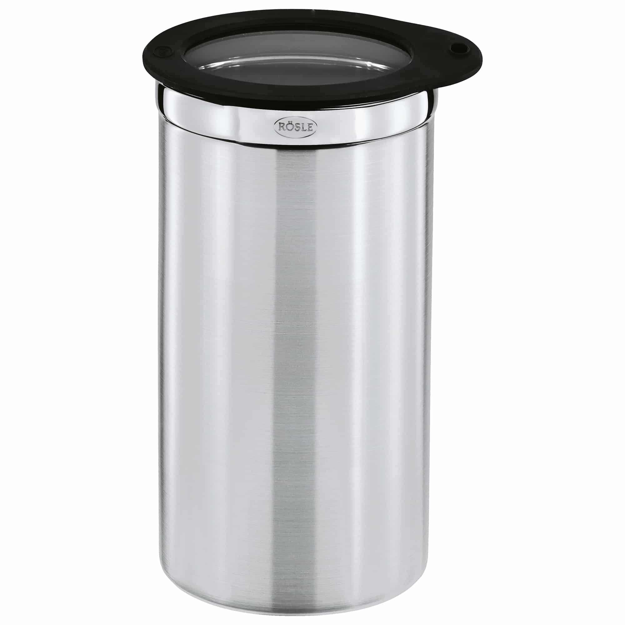 Otelul inoxidabil este materialul ideal pentru depozitarea alimentelor deoarece nu afecteaza aroma alimentelor si, in plus, este usor de curatat si durabil. Recipientul de depozitare de la Rosle este solutia perfecta pentru pastrarea cafelei, zaharului si multe altele in conditii favorabile.