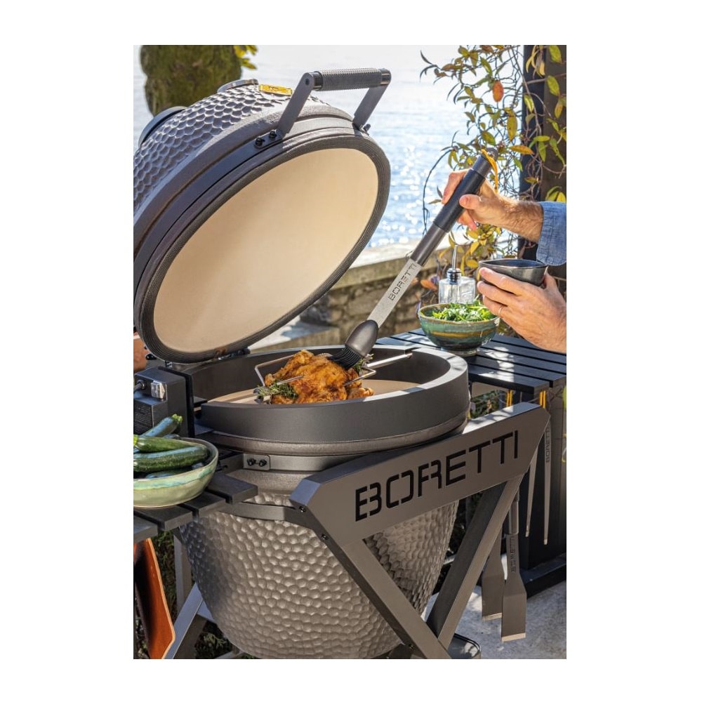 Rotisorul BBA100 este completarea perfecta pentru gratarul Boretti Ceramica Large. Pregateste un pui fraged, o pulpa de miel sau o rulada in cel mai scurt timp! Rotisorul rotativ iti va gati uniform carnea fara griji!