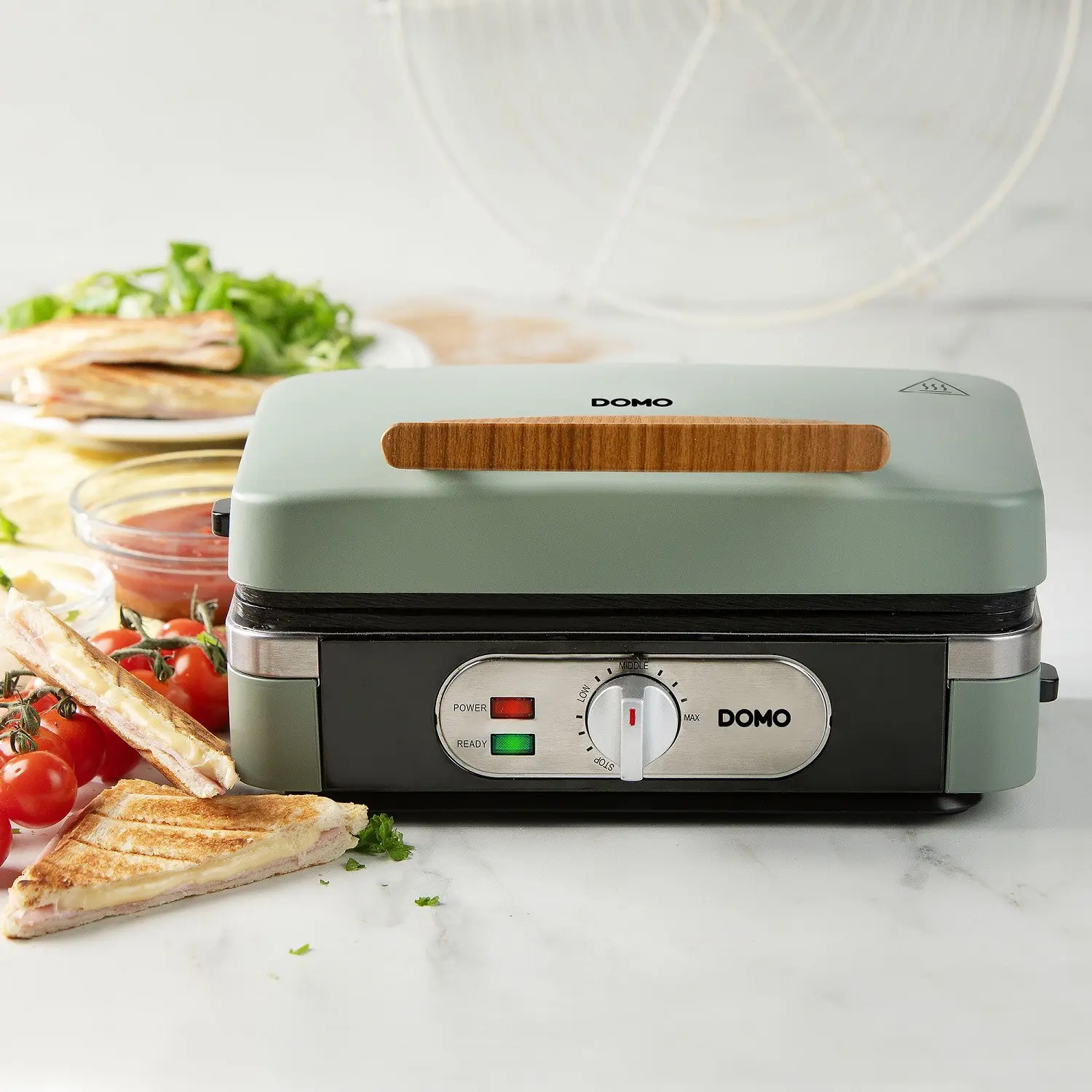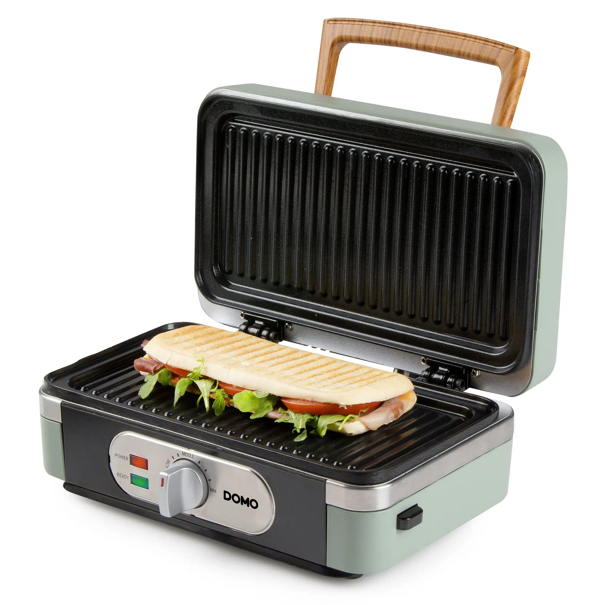 Aparatul de la DOMO iti prepara de la sandwichuri, la panini si gofre pufoase, usor si rapid, doar schimband placile din ceramica.