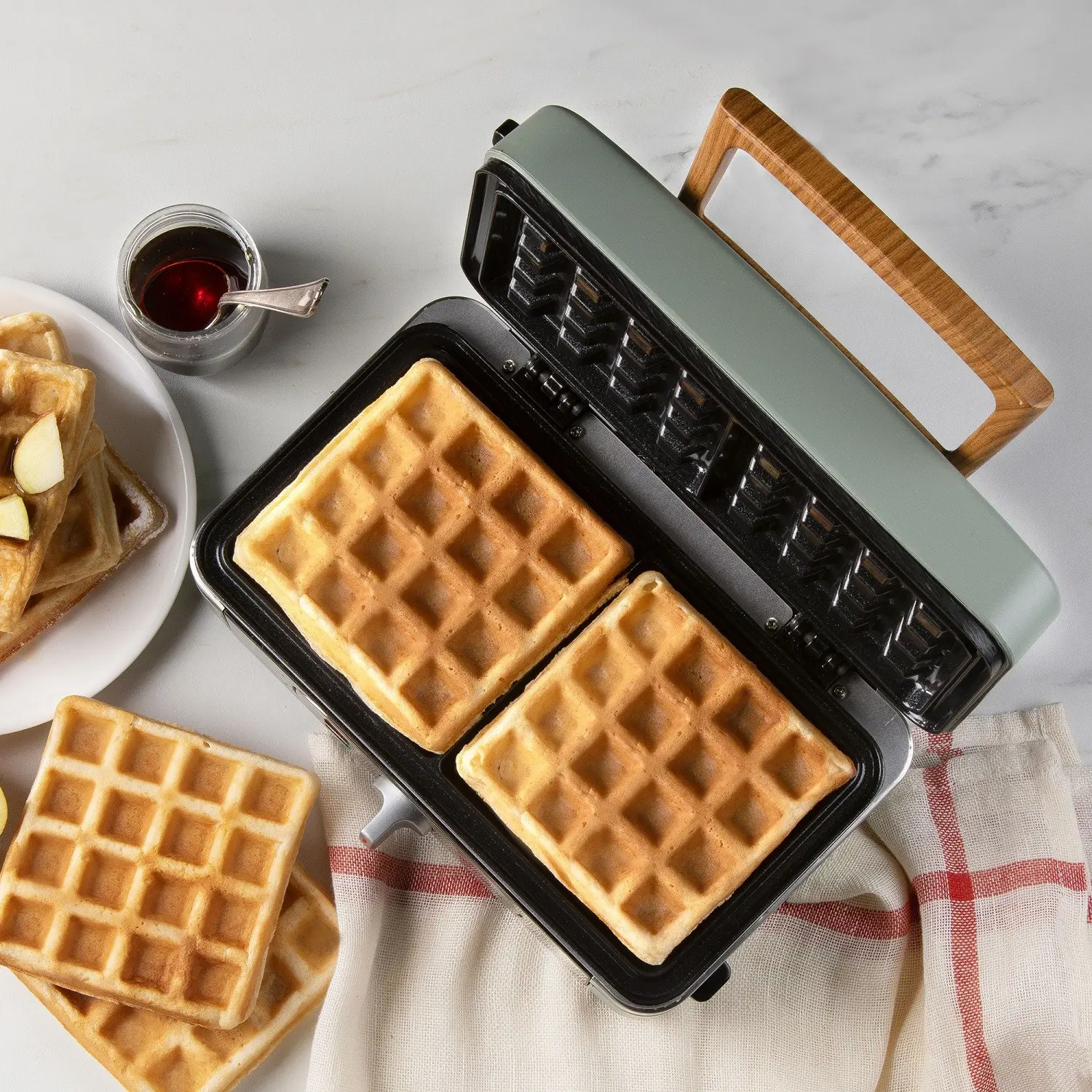 Multumita placilor cu acoperire antiaderenta din ceramica de calitate inalta, poti prepara gofre aurii si pufoase, dulci sau sarate, fara ca aluatul sa se lipeasca. In momentul in care aparatul s-a racit complet, suprafata antiaderenta poate fi stearsa doar cu o carpa umeda, ceea ce face curatarea mult mai rapida si facila.