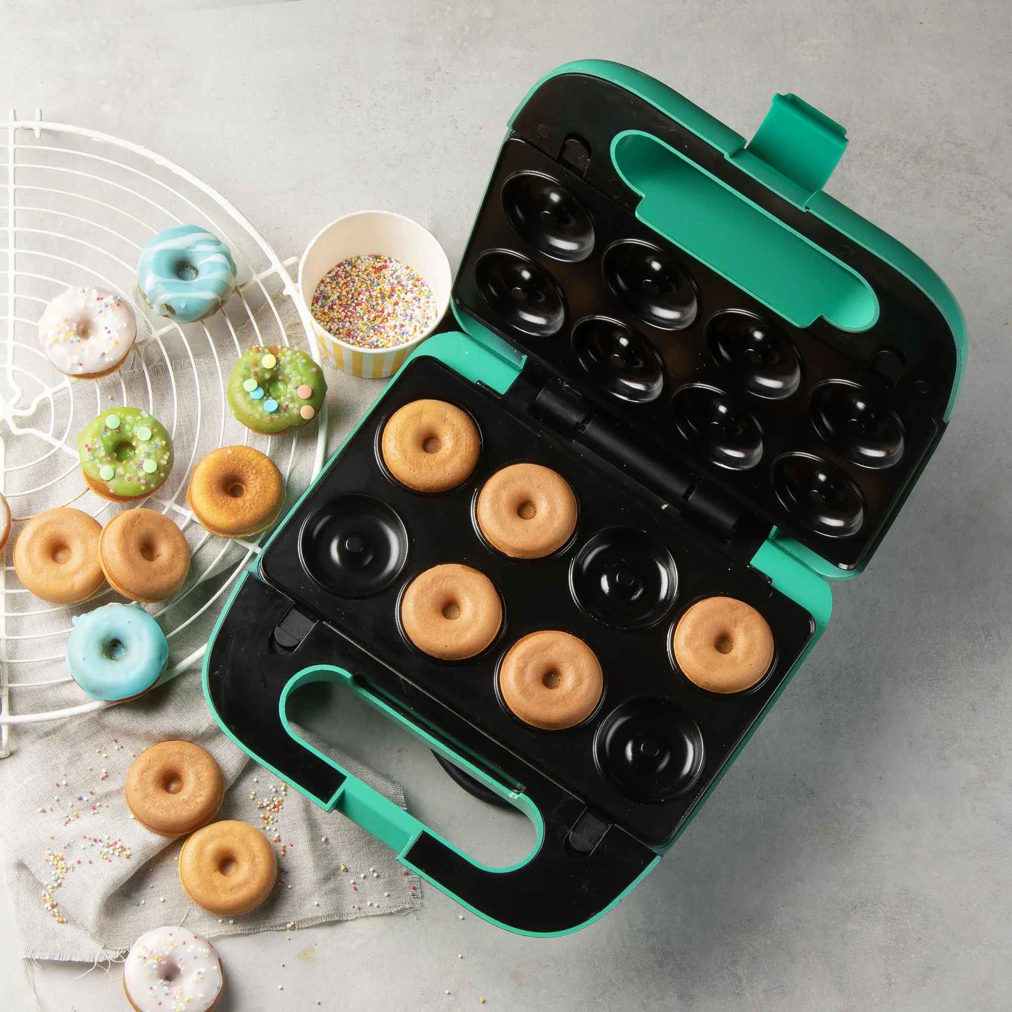 Snack Party 5in1 de la brandul belgian DOMO, este un sandwich maker si aparat de preparat desert, perfect pentru un mic dejun sau gustare rapida, fie ea dulce sau sarata. Placile de coacere antiaderente nu permite alimentelor sa se lipeasca si sunt usor de curatat.