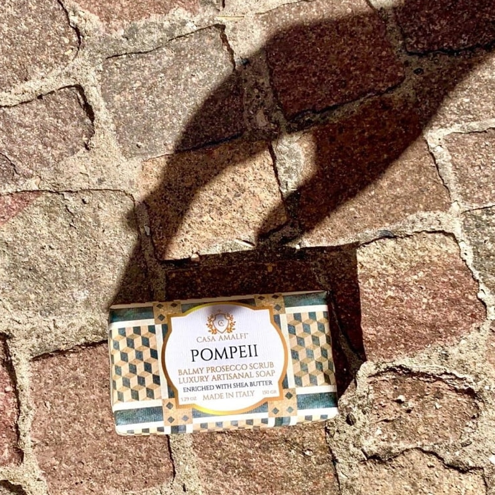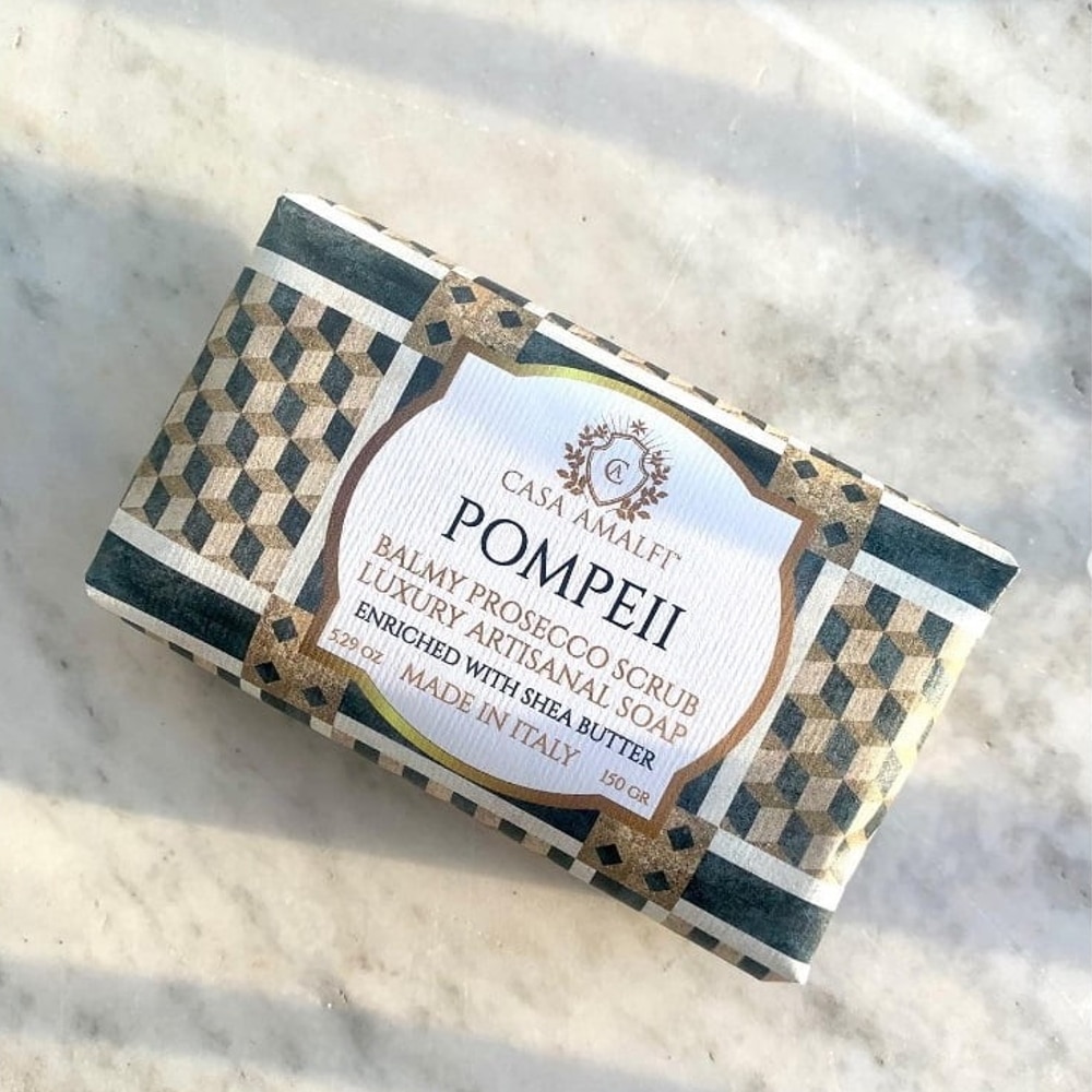 Sapunul artizanal Pompeii Body Scrub, de la brandul italian Casa Amalfi, iti va exfolia bland pielea, eliminand impuritatile si lasand pielea fina si parfumata. Sapunul revigorant este realizat de artizani in Italia, totul intr-un ambalaj elegant, in stilul maiolica.