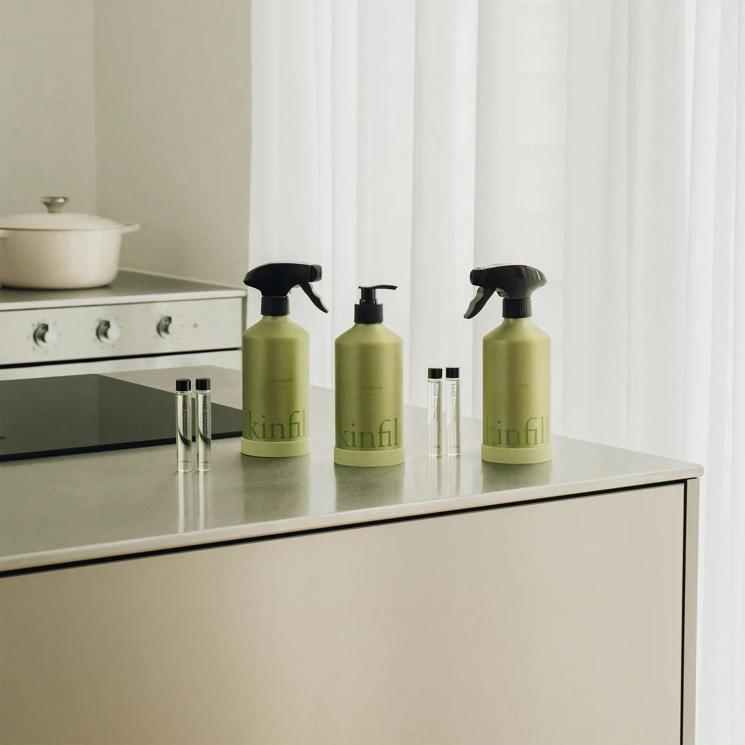 Sapunul de maini lichid Bergamote de la Kinfill, imbogatit cu extracte de chia, ginseng si unt de shea (karité), lasa pielea catifelata si hidratata fara efort.